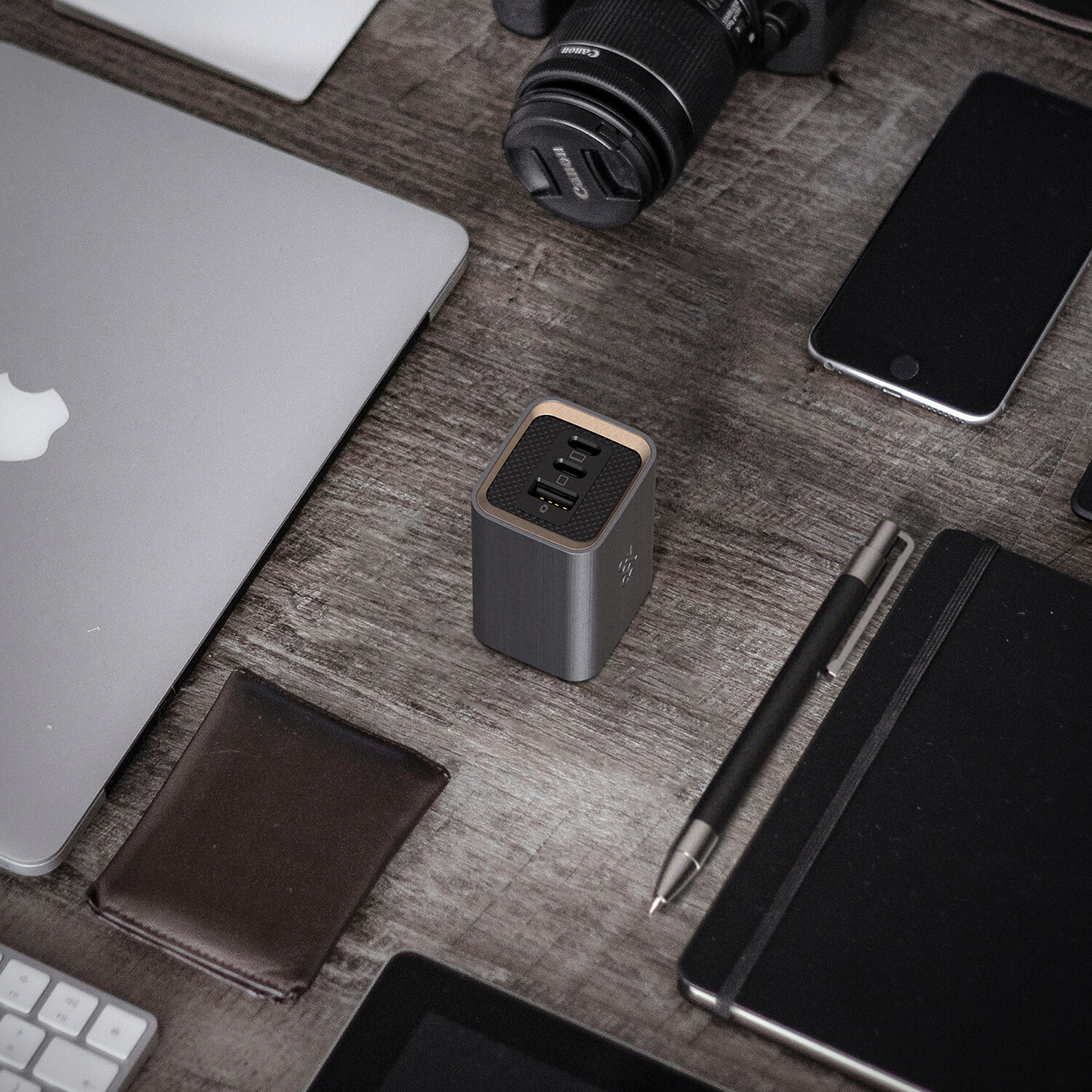 The Profile 100 // 100W // 2 USB-C + 1 USB-A delivers compact, high-speed charging with intelligent power distribution. Designed to handle a laptop, phone, and headphones simultaneously, it’s ideal for both daily use and travel—offering powerful performance in a size that fits in your palm.