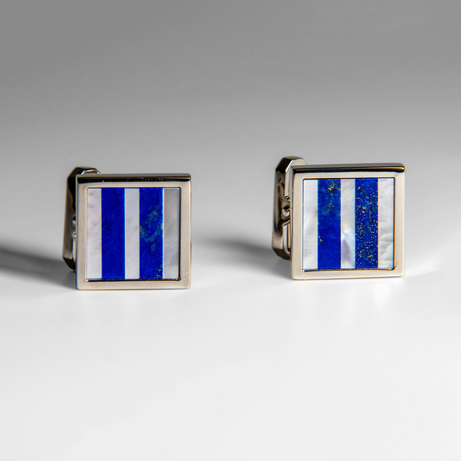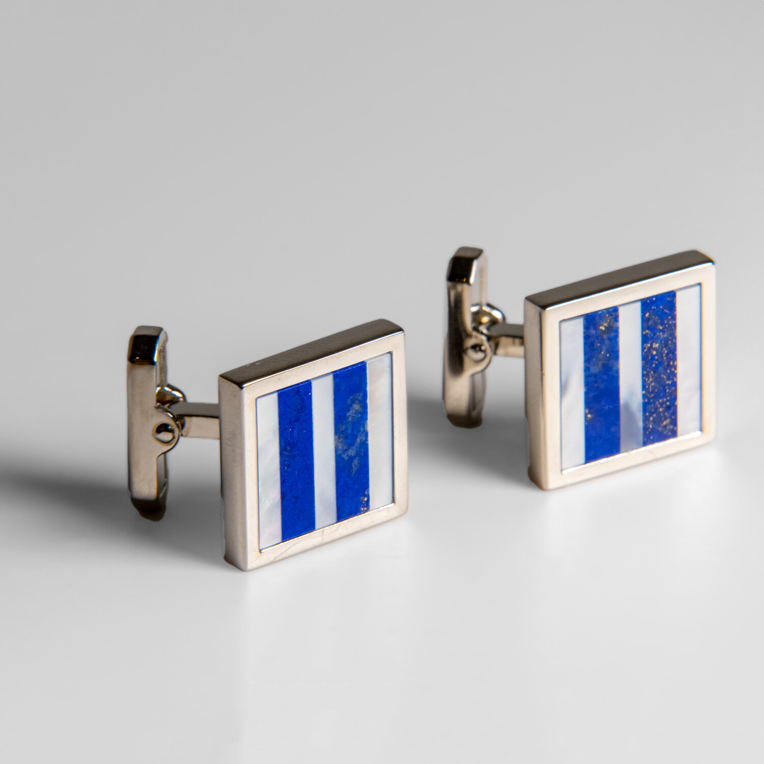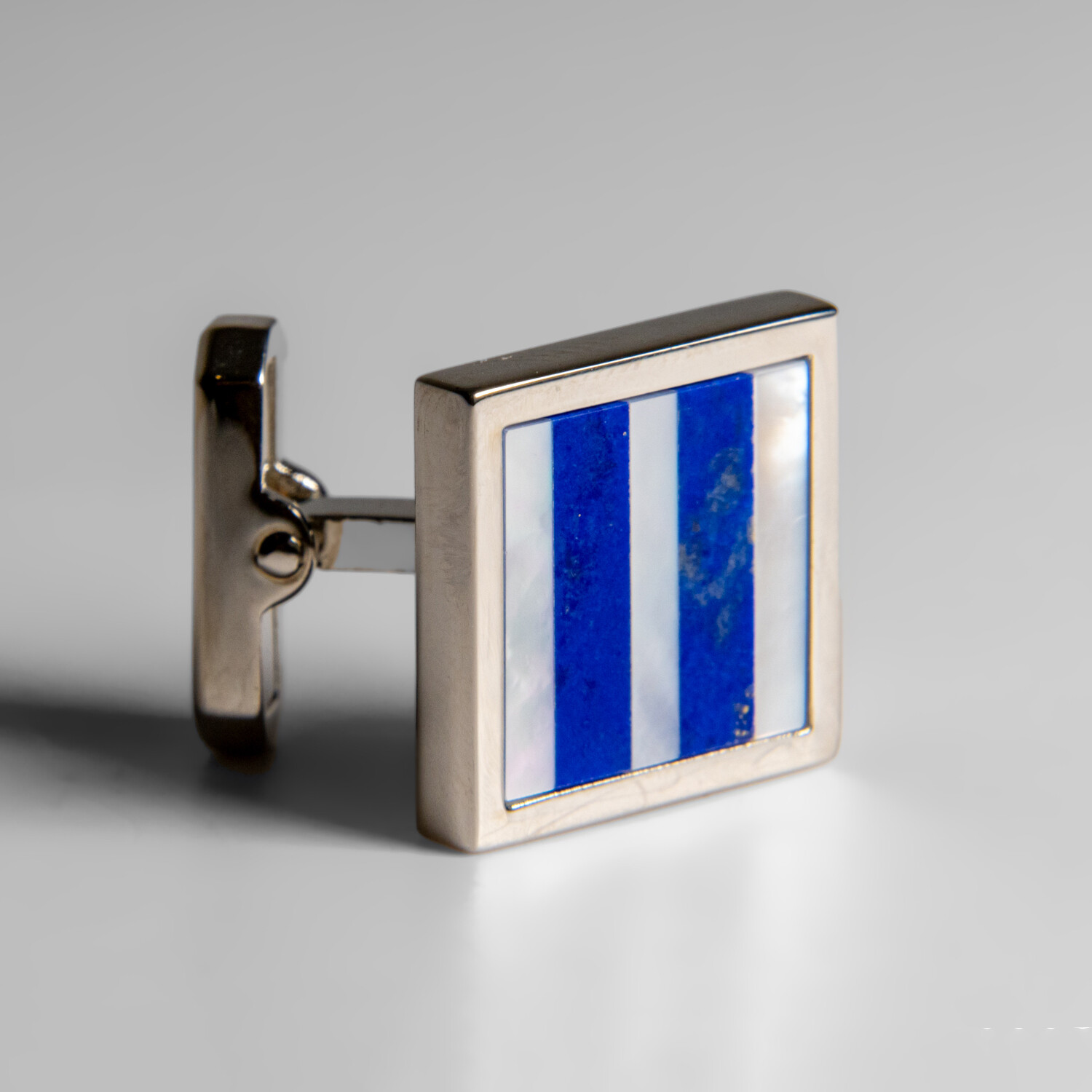 Lapis with Mother of Pearl cufflinks are stylish and unique, featuring deep blue and iridescent gemstones with a refined, layered finish. Known for their metaphysical properties, Lapis and Mother of Pearl are said to bring wisdom, intuition, and tranquility, making these cufflinks not just a fashionable accessory but also a symbol of insight and harmony.--Weight:18. 7 g