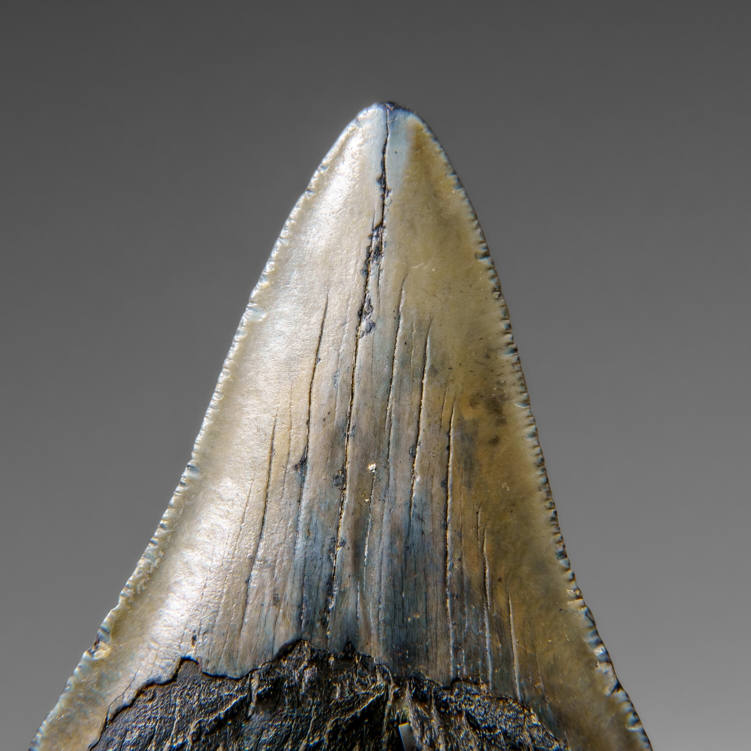 Megalodon was a prehistoric shark that may have been 50 feet long or more, two or three times as long as the Great White Shark! Just like modern sharks, this prehistoric predator did not have any bones to leave in the fossil record, except for their massive teeth. This Megalodon Shark Tooth is 100% genuine, unaltered and discovered by divers in deep waters off the coast of the Carolinas. These specialists search for fossils that are buried in the ocean floor. This specimen is accompanied with a Certificate of Authenticity and comes in a display case to show off the incredible size of this treasure.