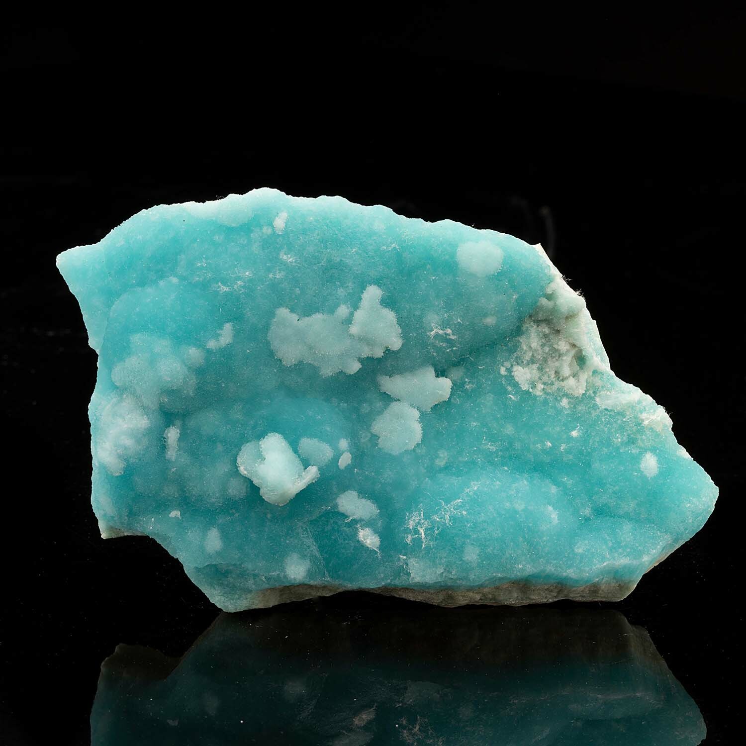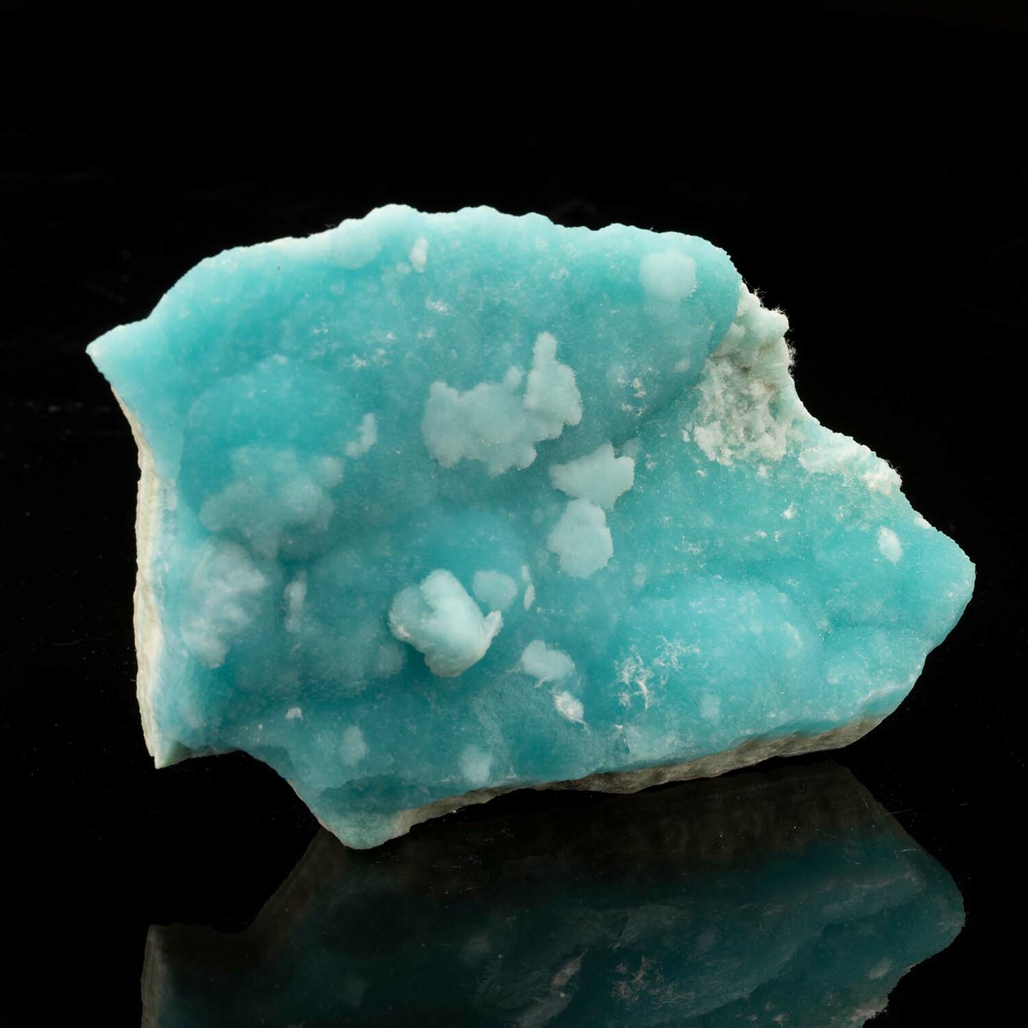 This stunningly pigmented specimen is a special find perfect for the discerning mineral enthusiast. It's unusual to find pieces of this calcium carbonate mineral with such spectacular color and botryoidal crystal formation. This crystal comes from a pocket very recently discovered in Afghanistan and is sure to add color to and elevate the aesthetic appeal of any fine minerals collection. The cube in the picture is approximately one centimeter.