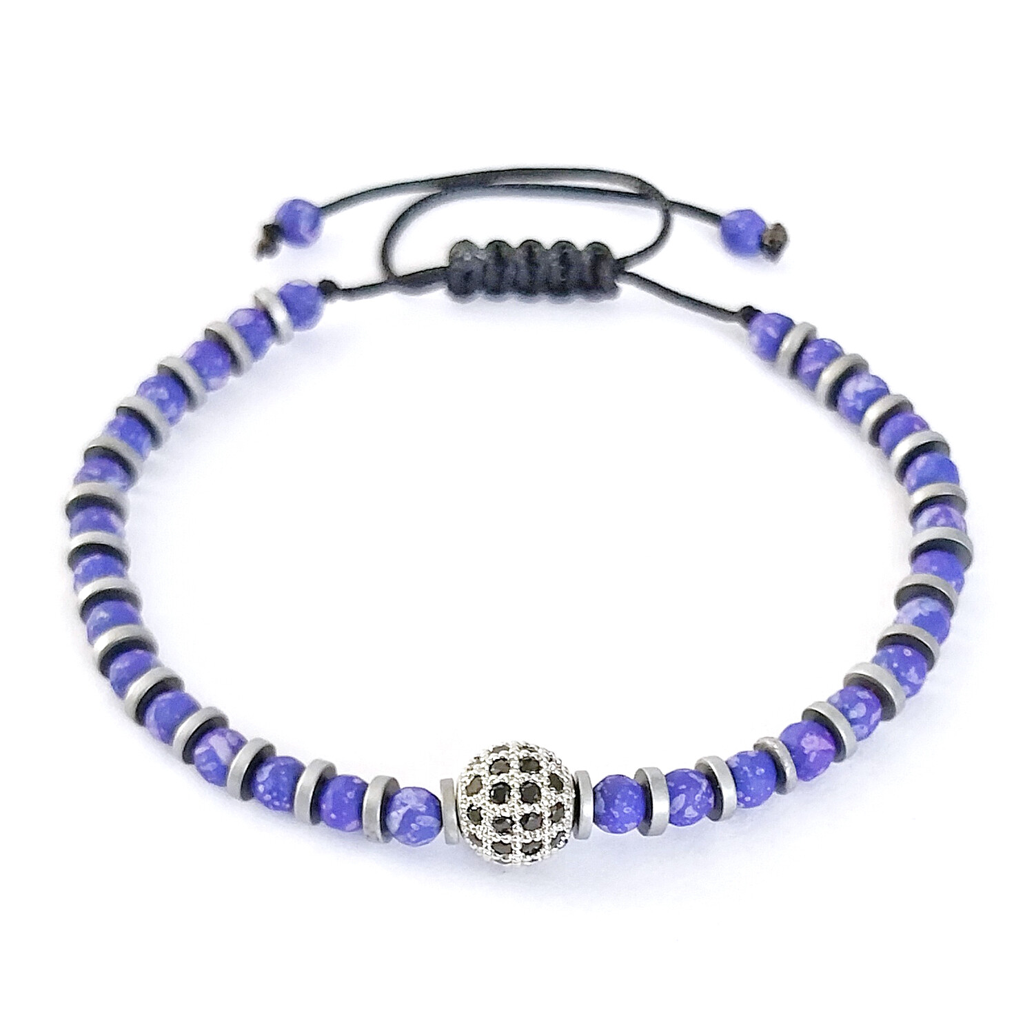 Natural Stone Beaded Accent Bracelet // Purple + Silver