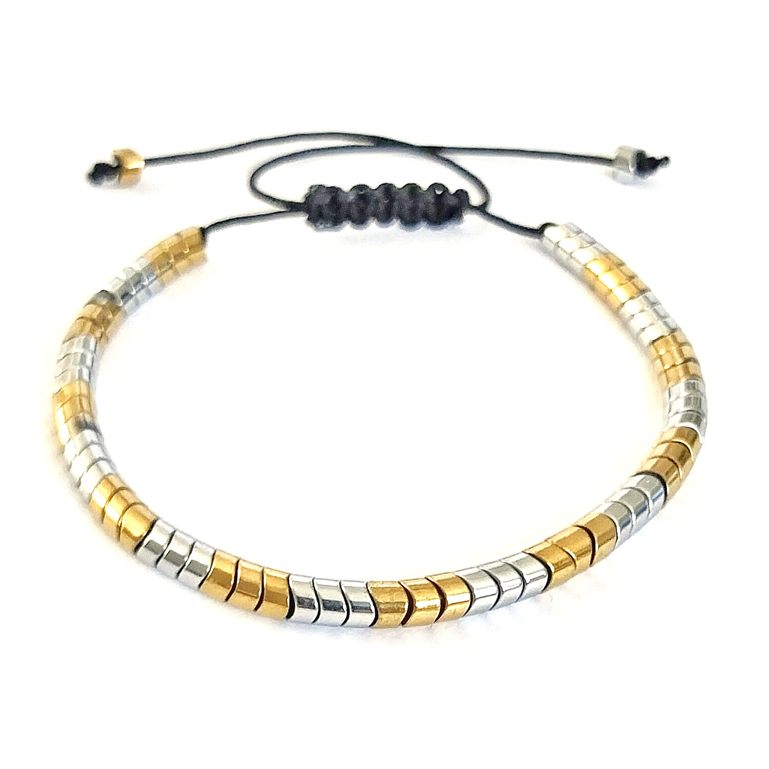 Natural Stone Curvy Beaded Bracelet // Silver + Gold