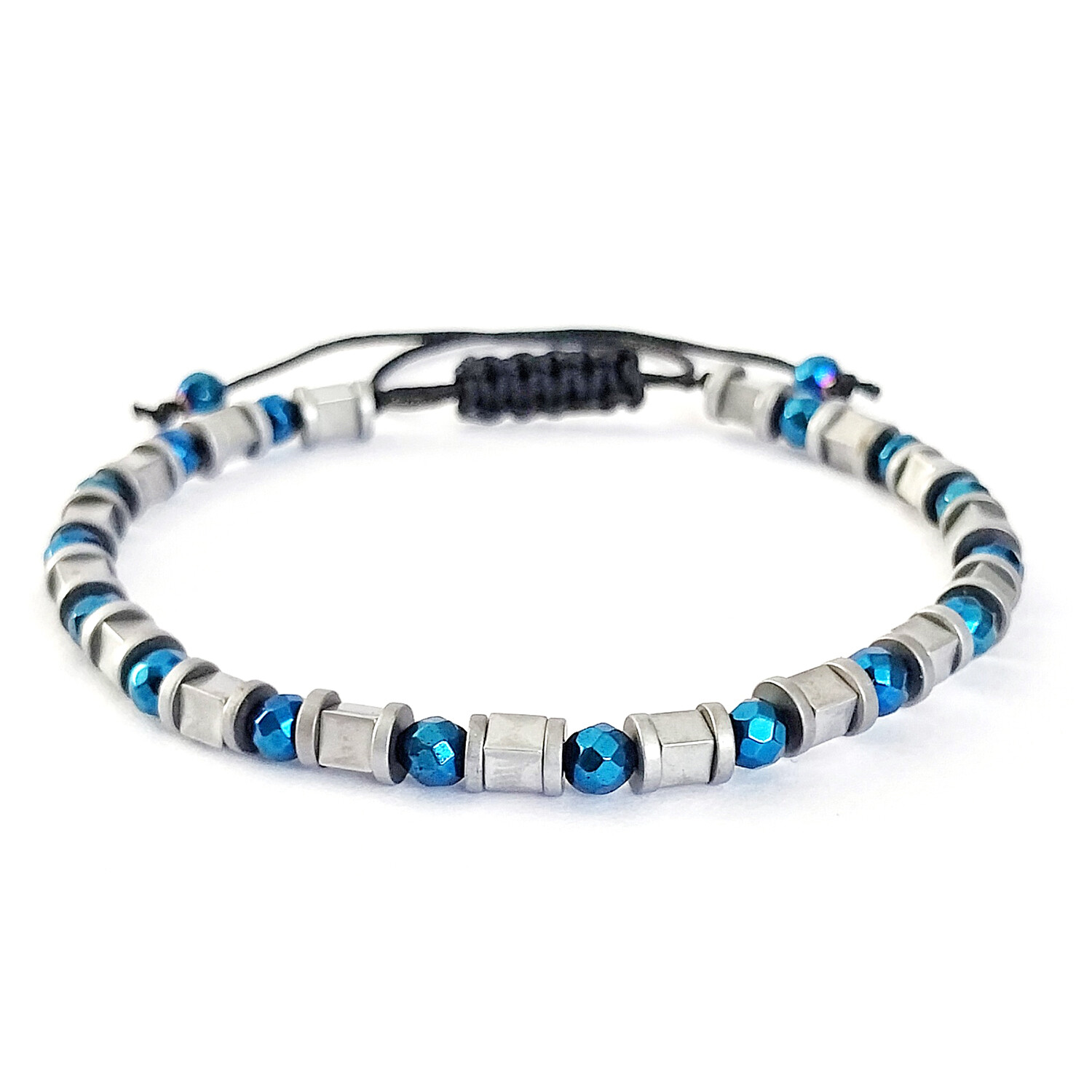 Natural Stone Multi-Shape Beaded Bracelet // Silver + Blue