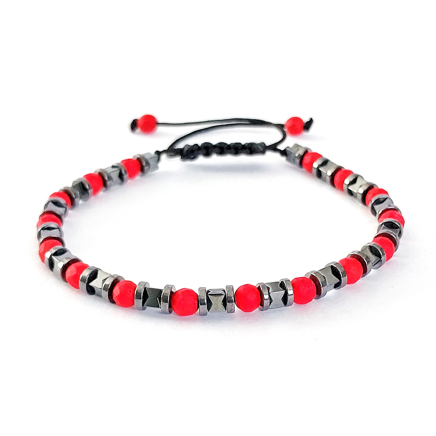 Natural Stone Multi-Shape Beaded Bracelet // Silver + Red
