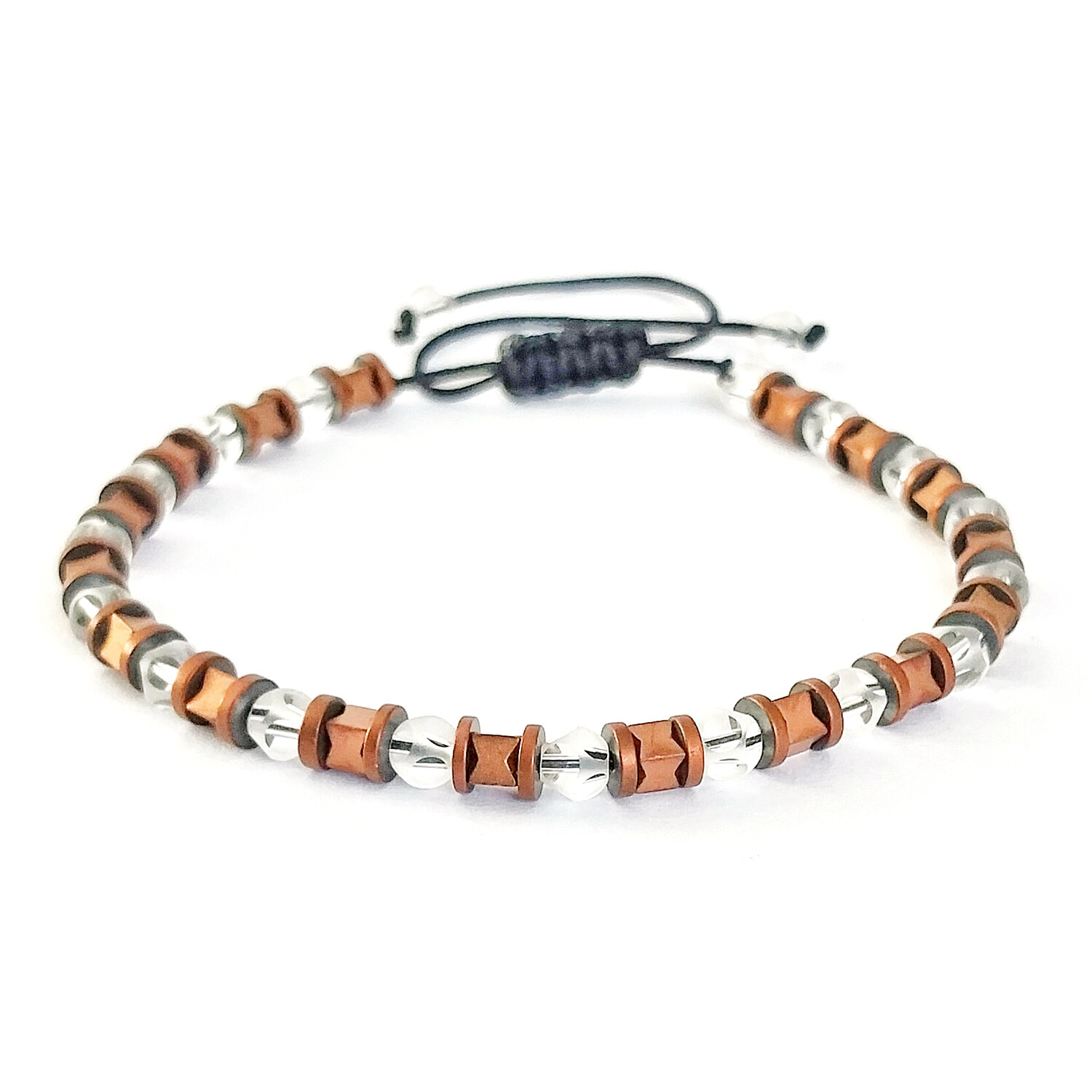 Natural Stone Multi-Shape Beaded Bracelet // Transparent + Bronze