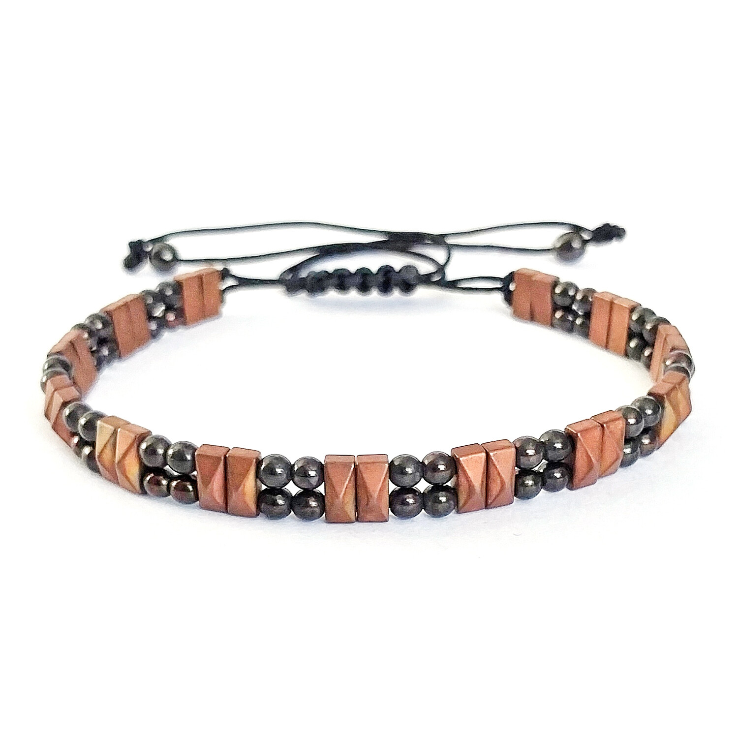 Natural Stone Round + Stud Beaded Bracelet // Bronze + Black