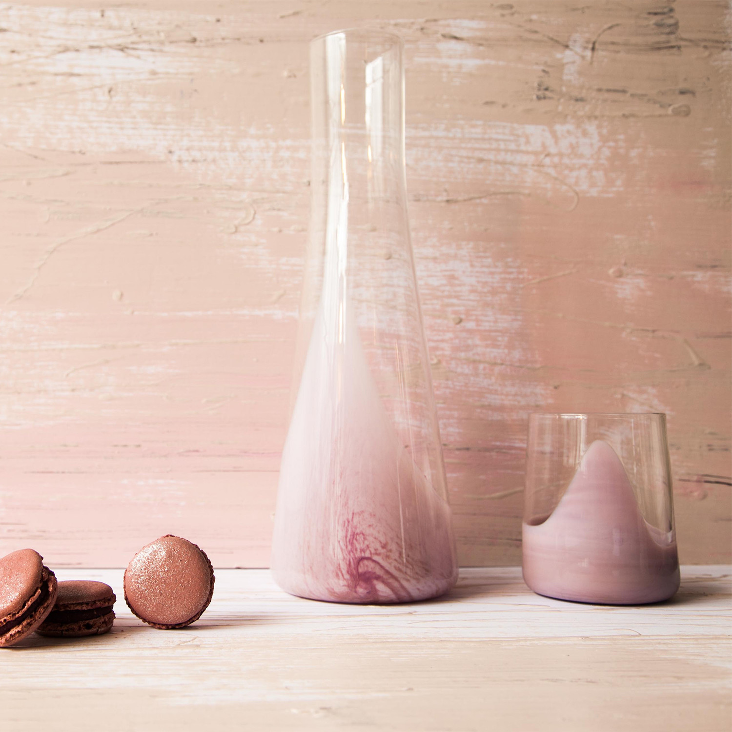 Environmentally-conscious glassware company Bib & Sola has designed and brought to life this striking collection of Handblown Glass Carafes, to provide you with an elegant solution to keeping water and drinks at the ready, instead of using plastic bottles. Each carafe is blown completely by hand, and the accented design is achieved by controlling the movement of the pigment through the molten glass while it's being blown - an intricate technique that is notoriously difficult to achieve, let alone master. Since each one is individually created, no two will ever look exactly alike.