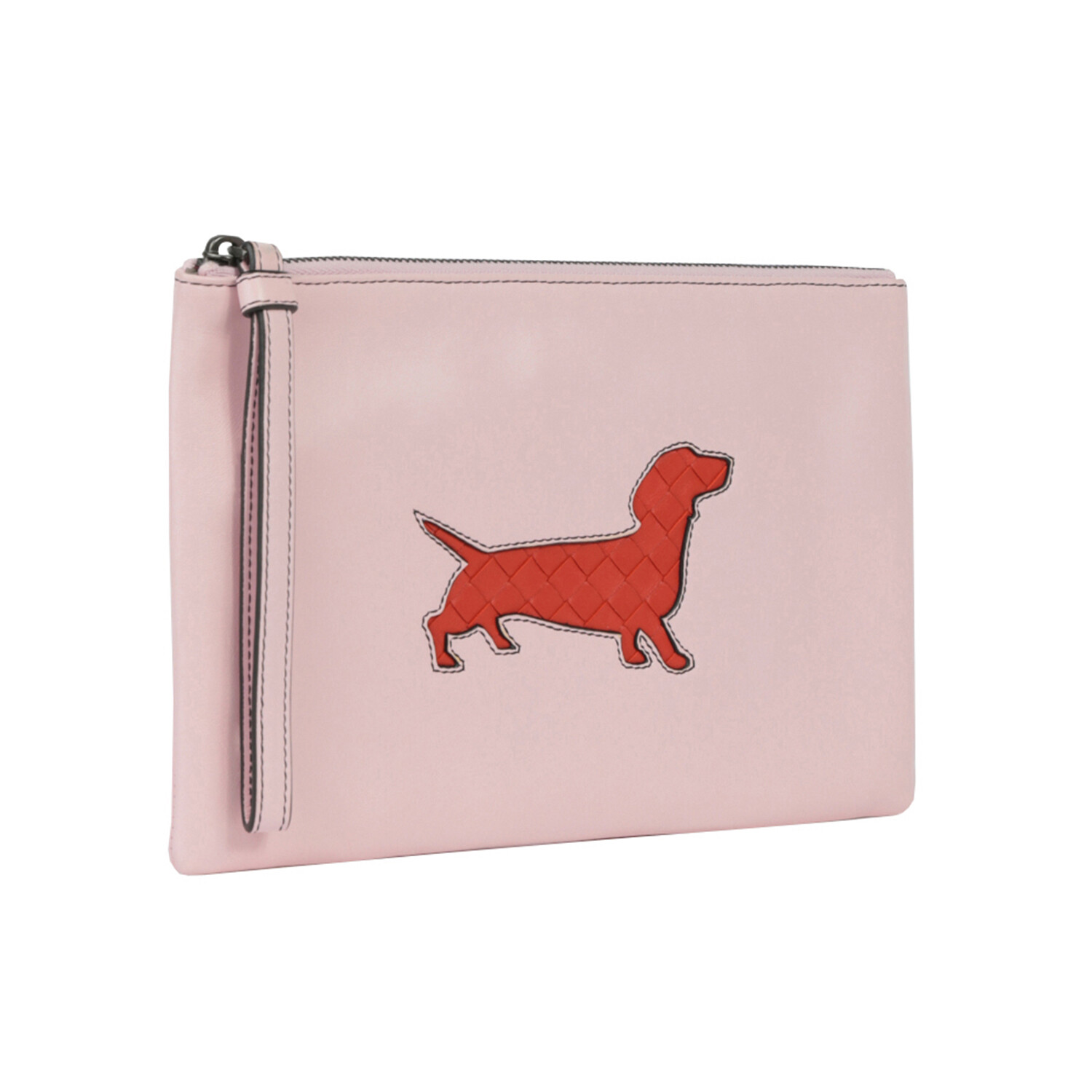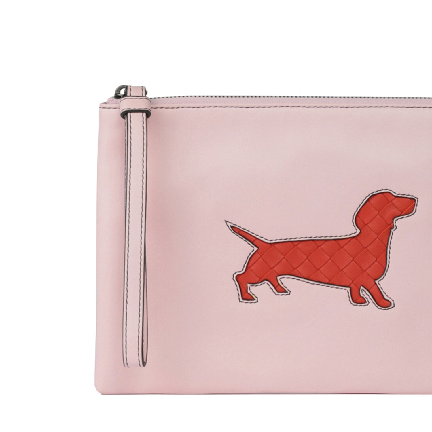 — Wristlet Features A Red Woven Texture Dog Pattern