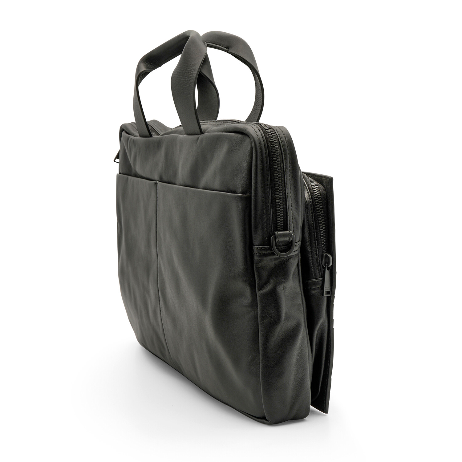 — Black Textured Woven Leather With Zippered Closure And Handles