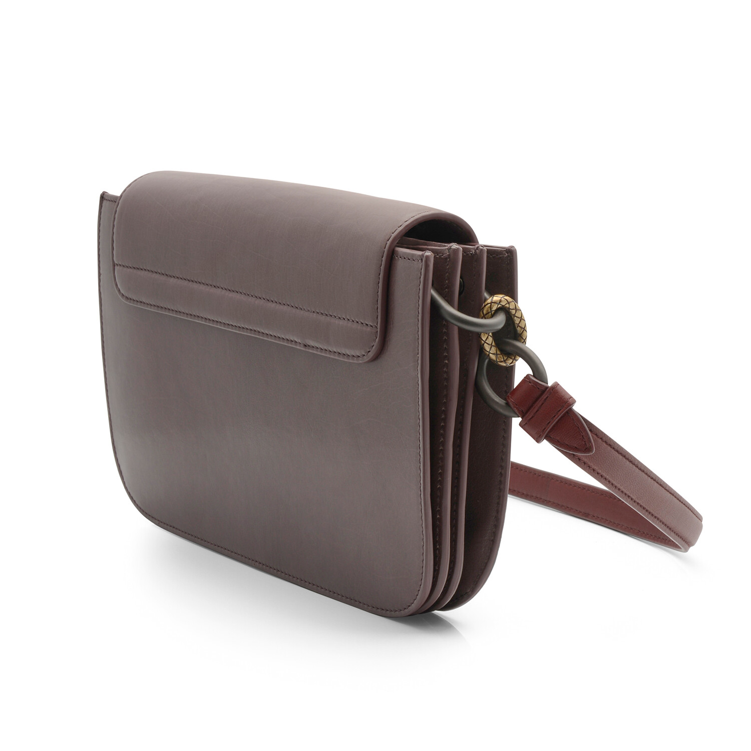 — Maroon Leather With Textured Buckles And A Snap Closure