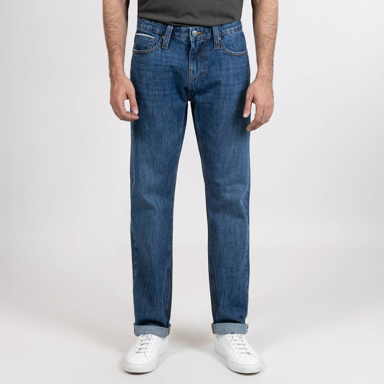 Blue Medium Rinse Wash Slim Straight Selvedge Jeans - Stud // Indigo