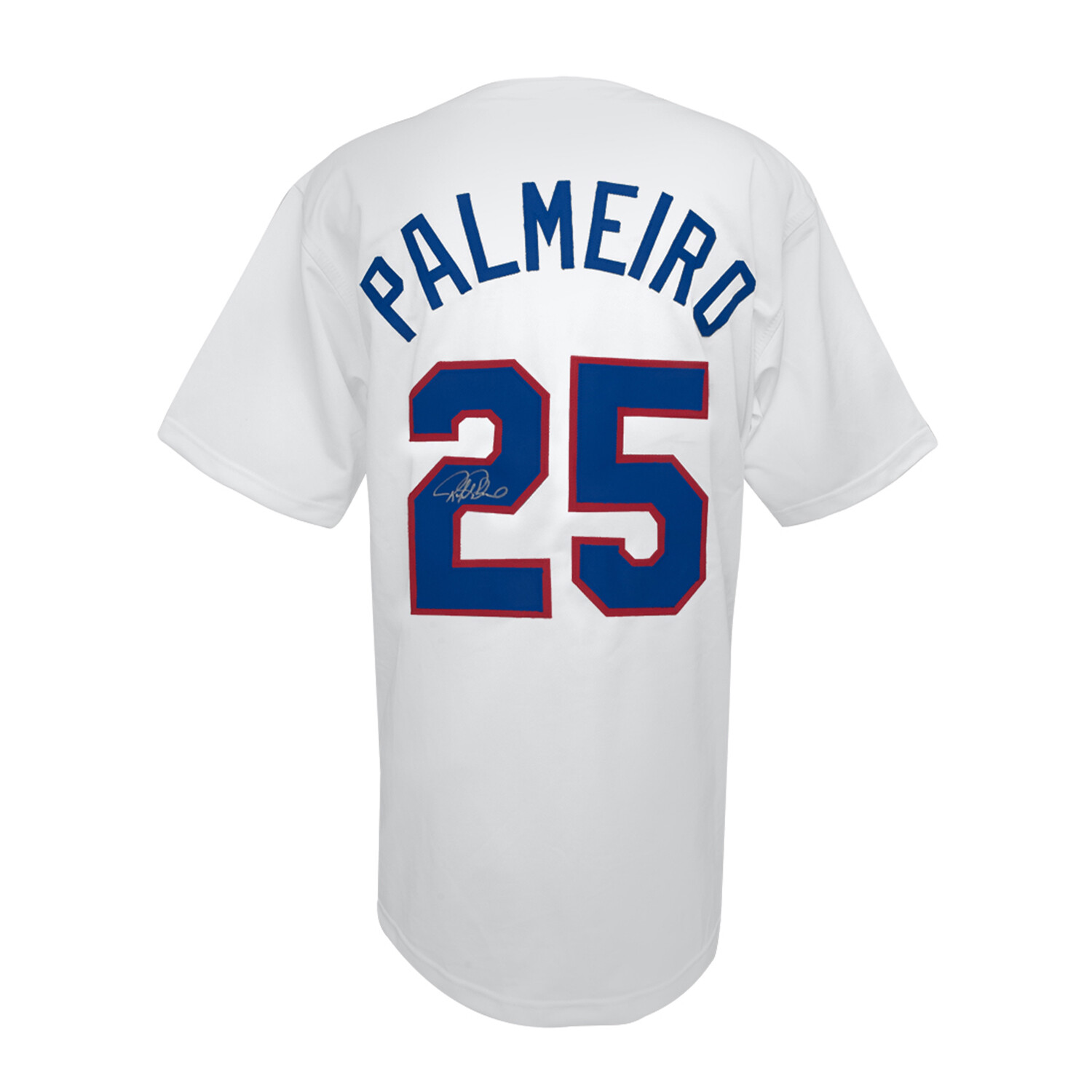 Celebrate one of baseball’s elite hitters with this Rafael Palmeiro autographed white custom jersey. A member of the 500 home run and 3,000 hit clubs, Palmeiro’s remarkable consistency and power made him one of the most productive sluggers of his era.