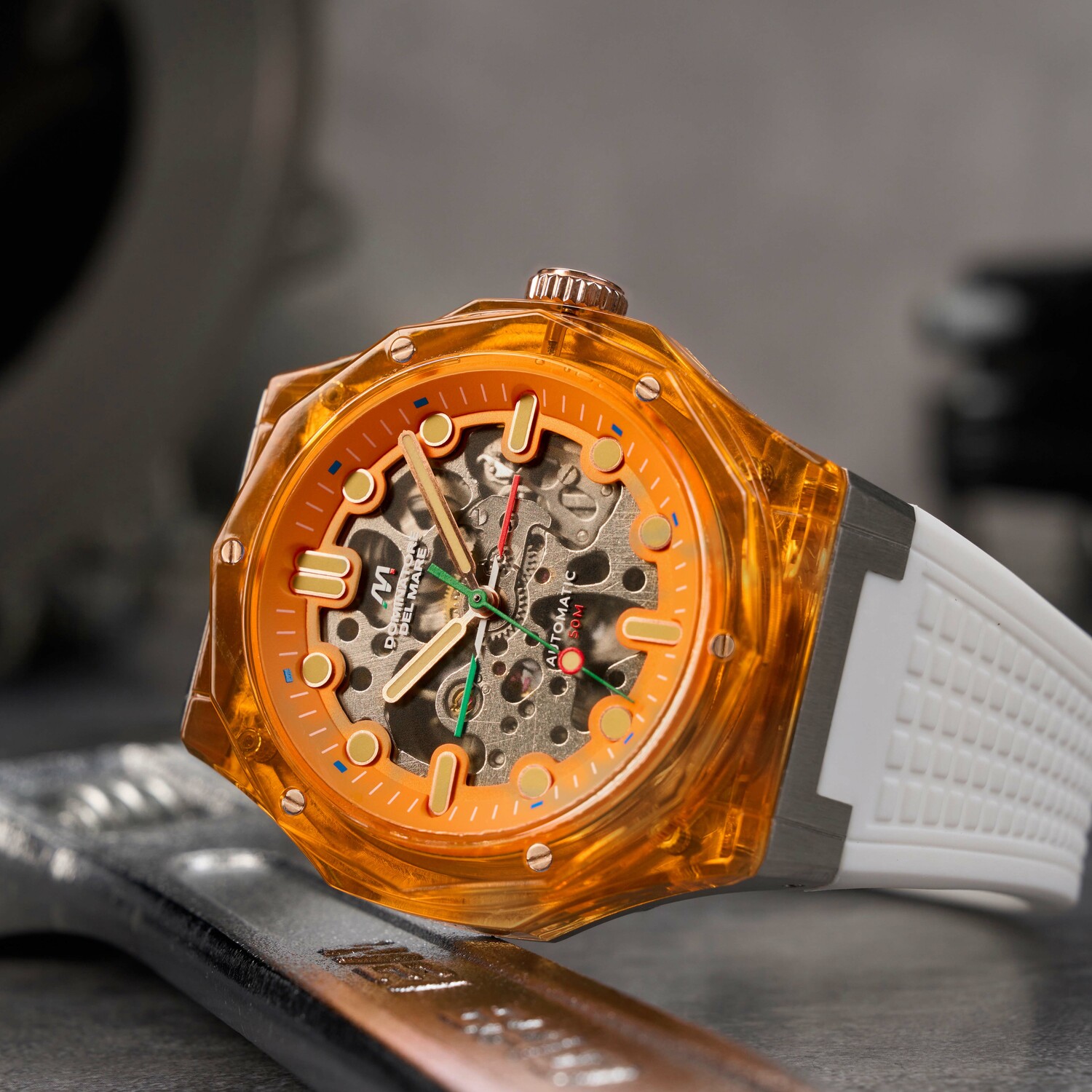 Ravello Automatic Is A Bold Tribute To The Natural Beauty And Vibrant Spirit Of Ravello, The Jewel Of The Amalfi Coast. Its Intricate Skeleton Dial Reveals The Artistry Of Its Automatic Movement, While The Semi-transparent Case Captures The Glow Of Amalfi Sunsets And The Vibrance Of Ravello’s Festivals. Like The Coastal Town, The Ravello Automatic Marks A Remarkable Presence On Your Wrist.