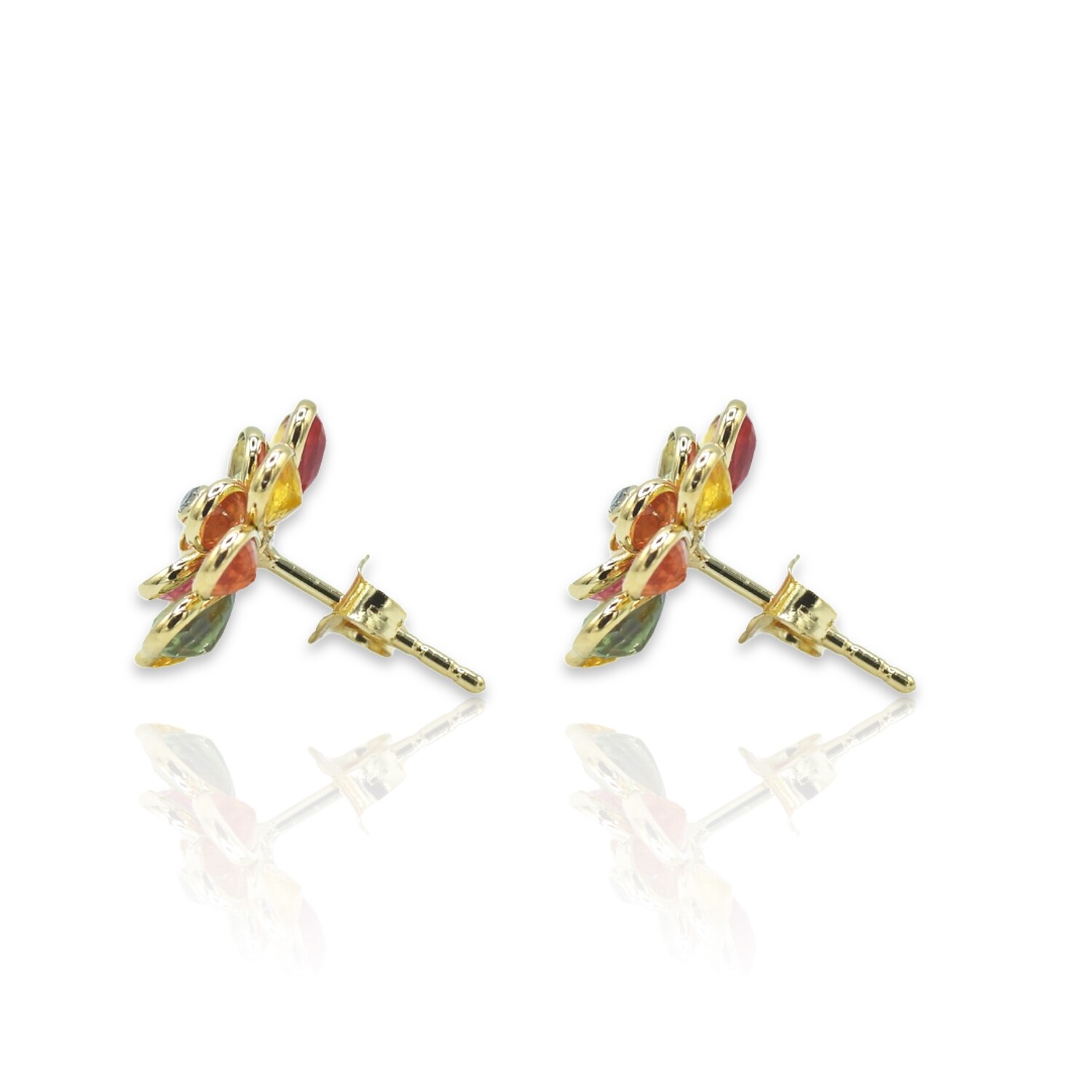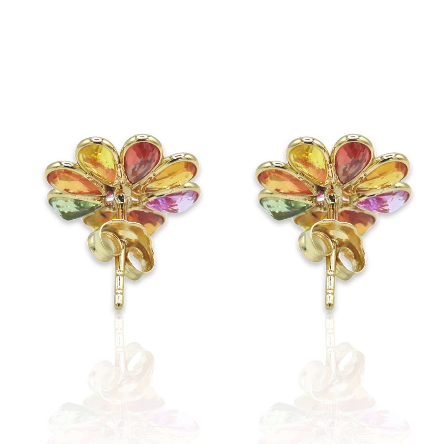 18K Yellow Gold Multi Sapphire + Diamond Flower Earrings // Pre-Owned