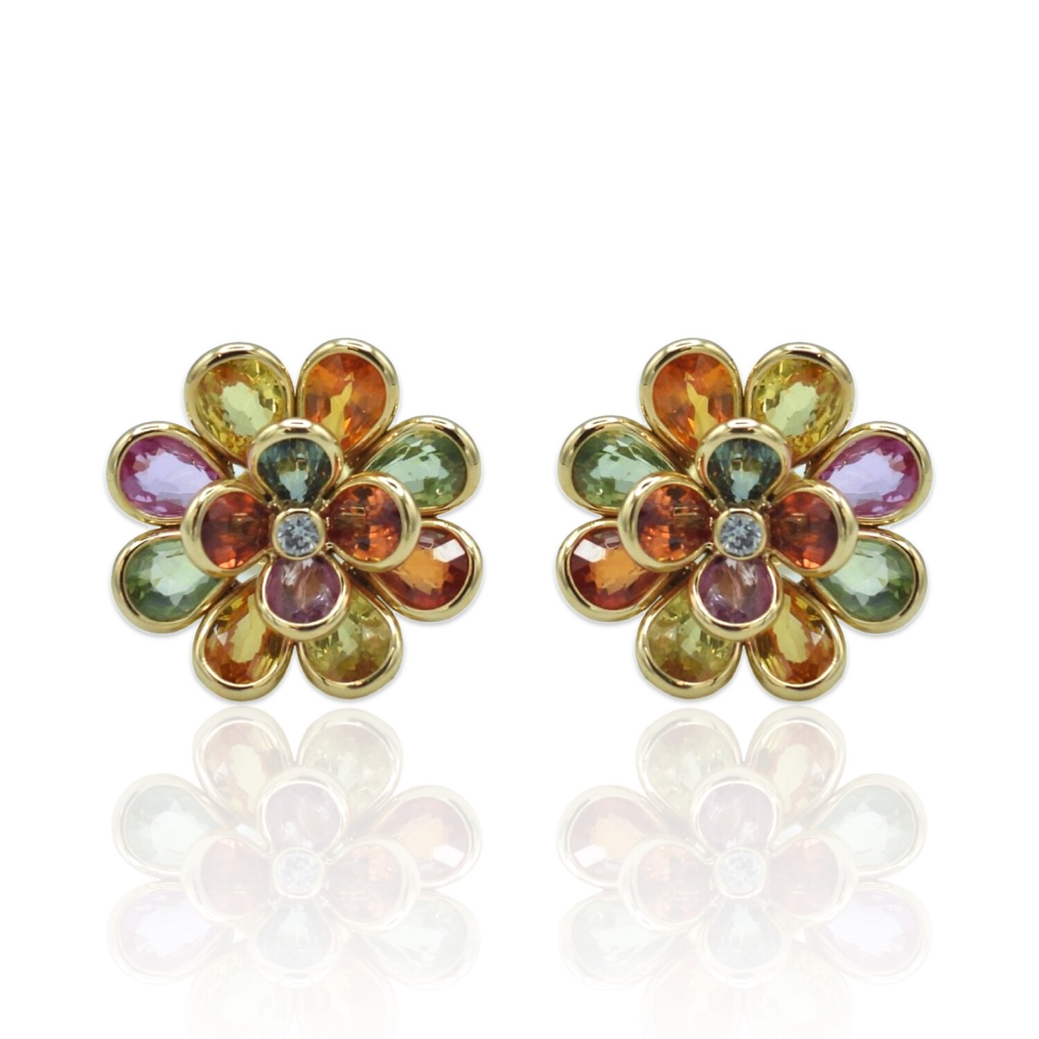 18K Yellow Gold Multi-Sapphire Earrings // Pre-Owned