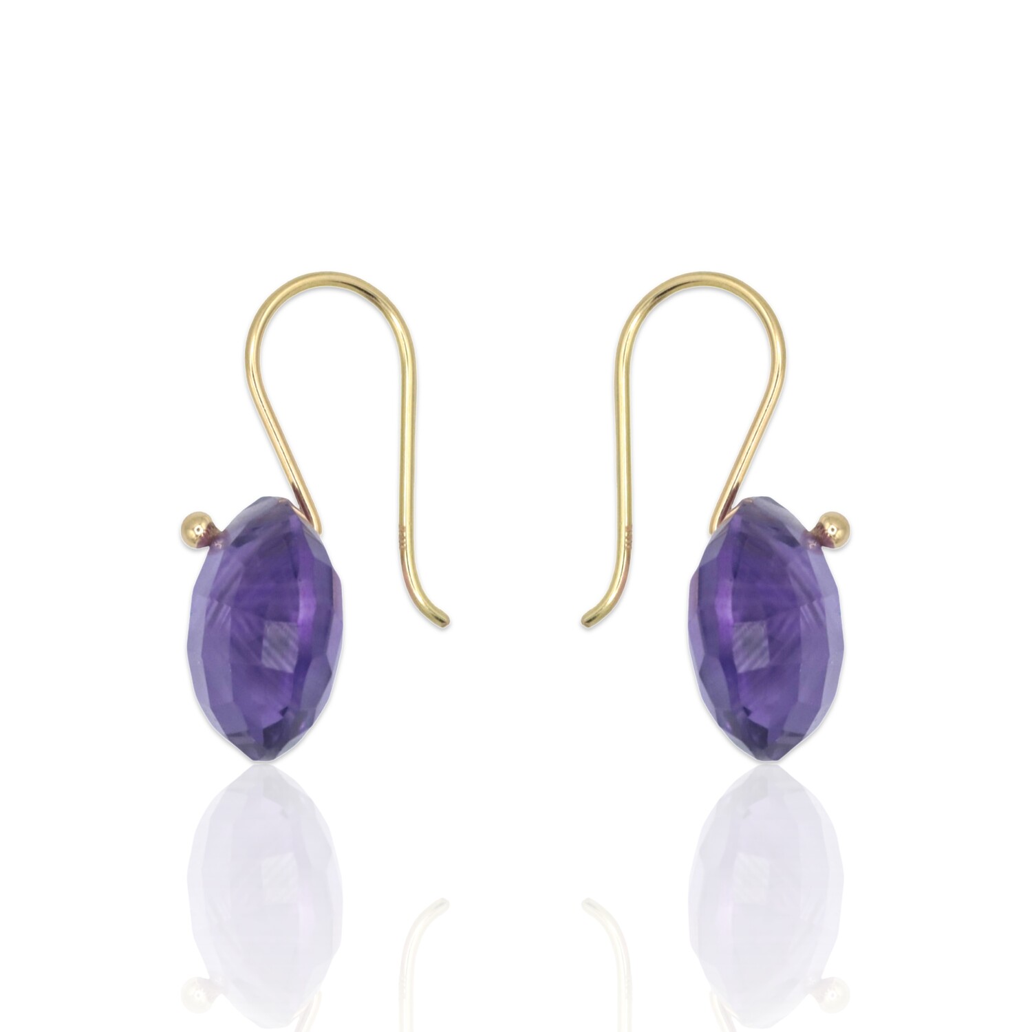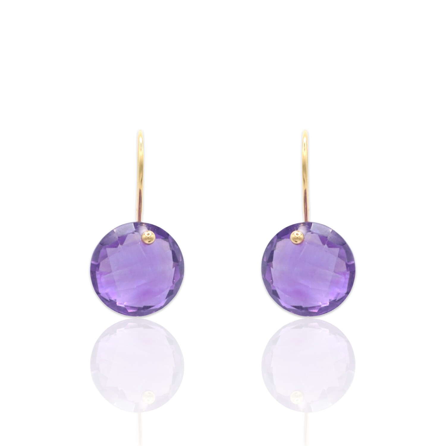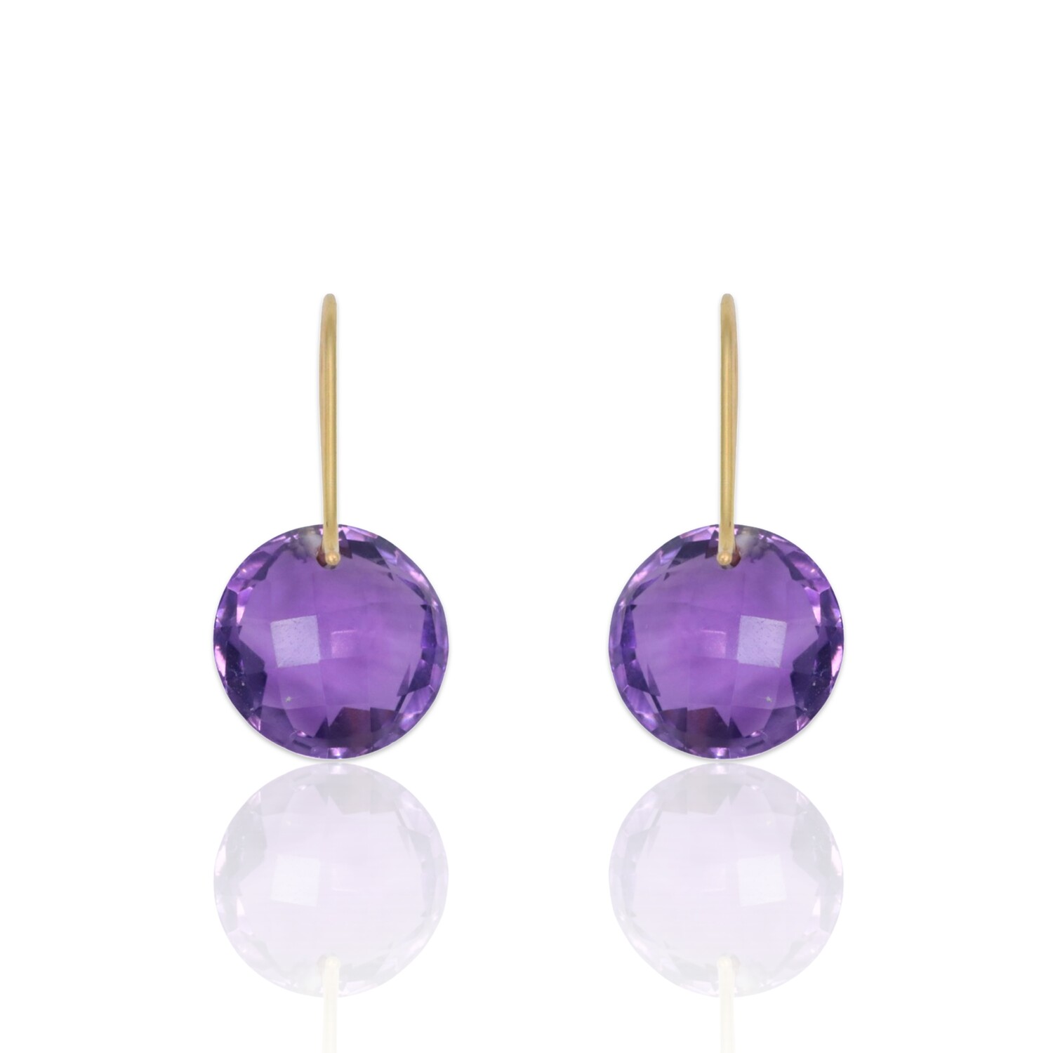 18K Yellow Gold Round Amethyst Earrings // Pre-Owned