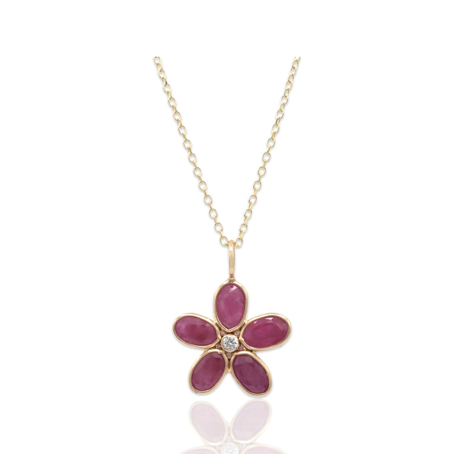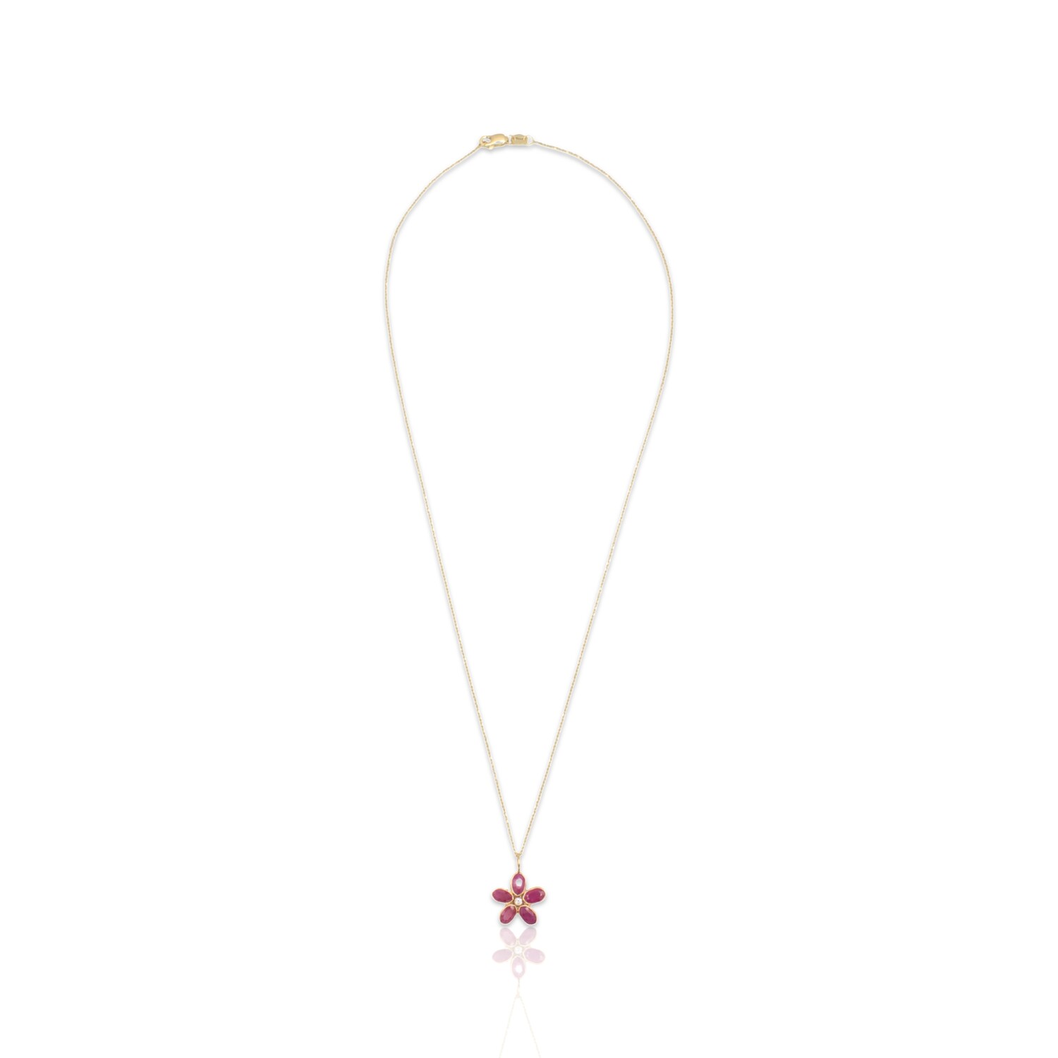 18K Yellow Gold Ruby + Diamond Necklace // 16" // Pre-Owned