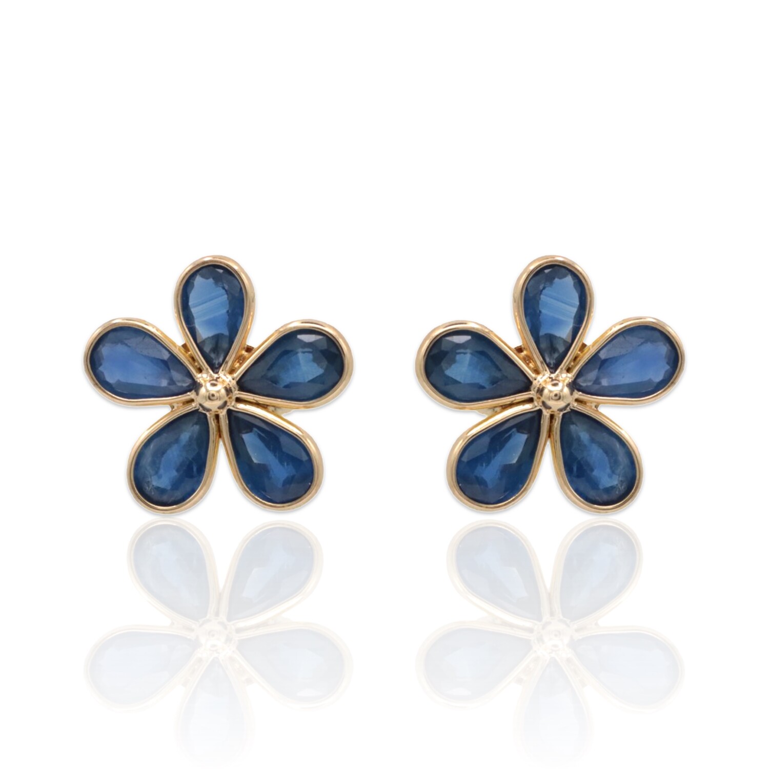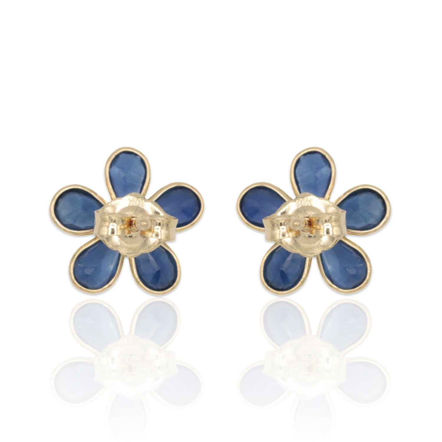 18K Yellow Gold Sapphire Small Flower Earrings // Pre-Owned