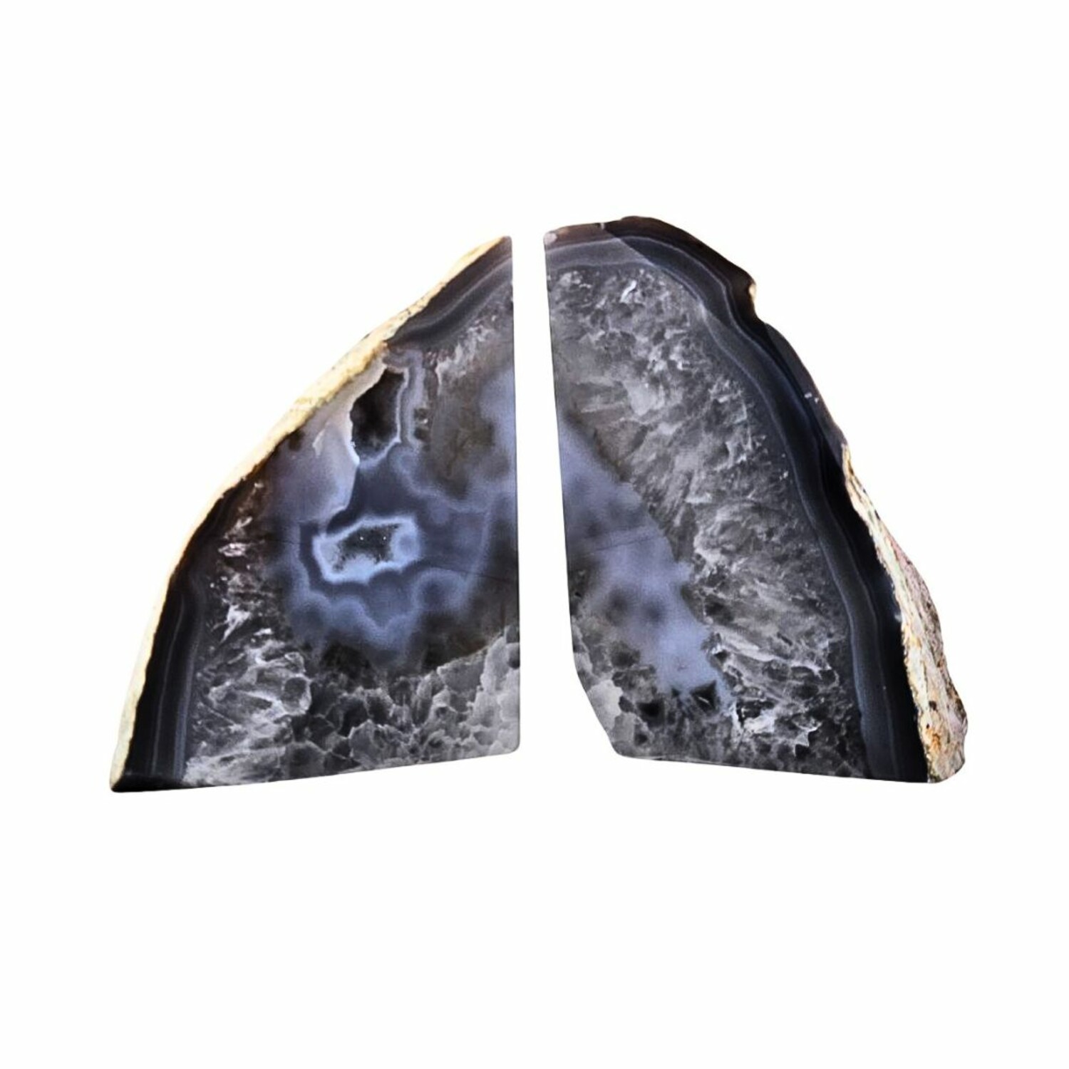 Elevate your space with the timeless Eternity Agate Medium Pair Bookends in grey. These agate bookends feature rich, dark tones and unique patterns, making them a striking addition to any bookshelf or desk. Ideal for adding a touch of sophistication, they not only organize your books but also serve as decorative art pieces. Each pair is naturally unique, bringing elegance and individuality to your decor.