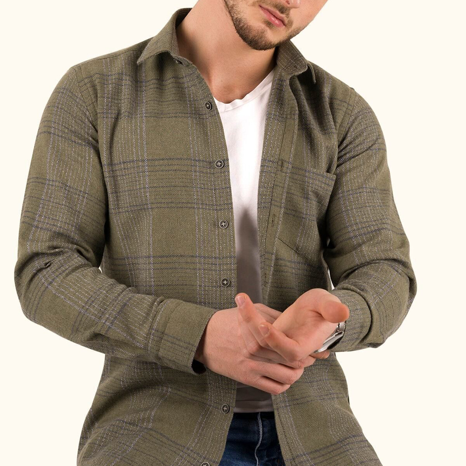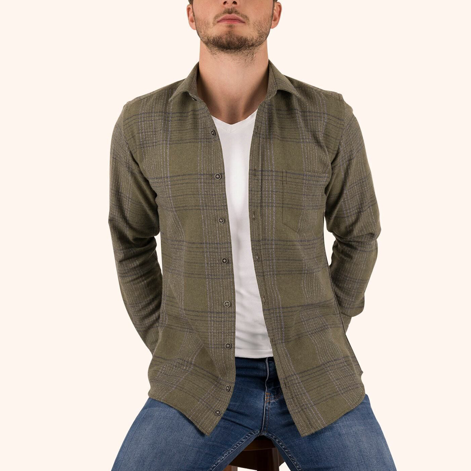Plaid Flannel Button-Up Shirt // Khaki