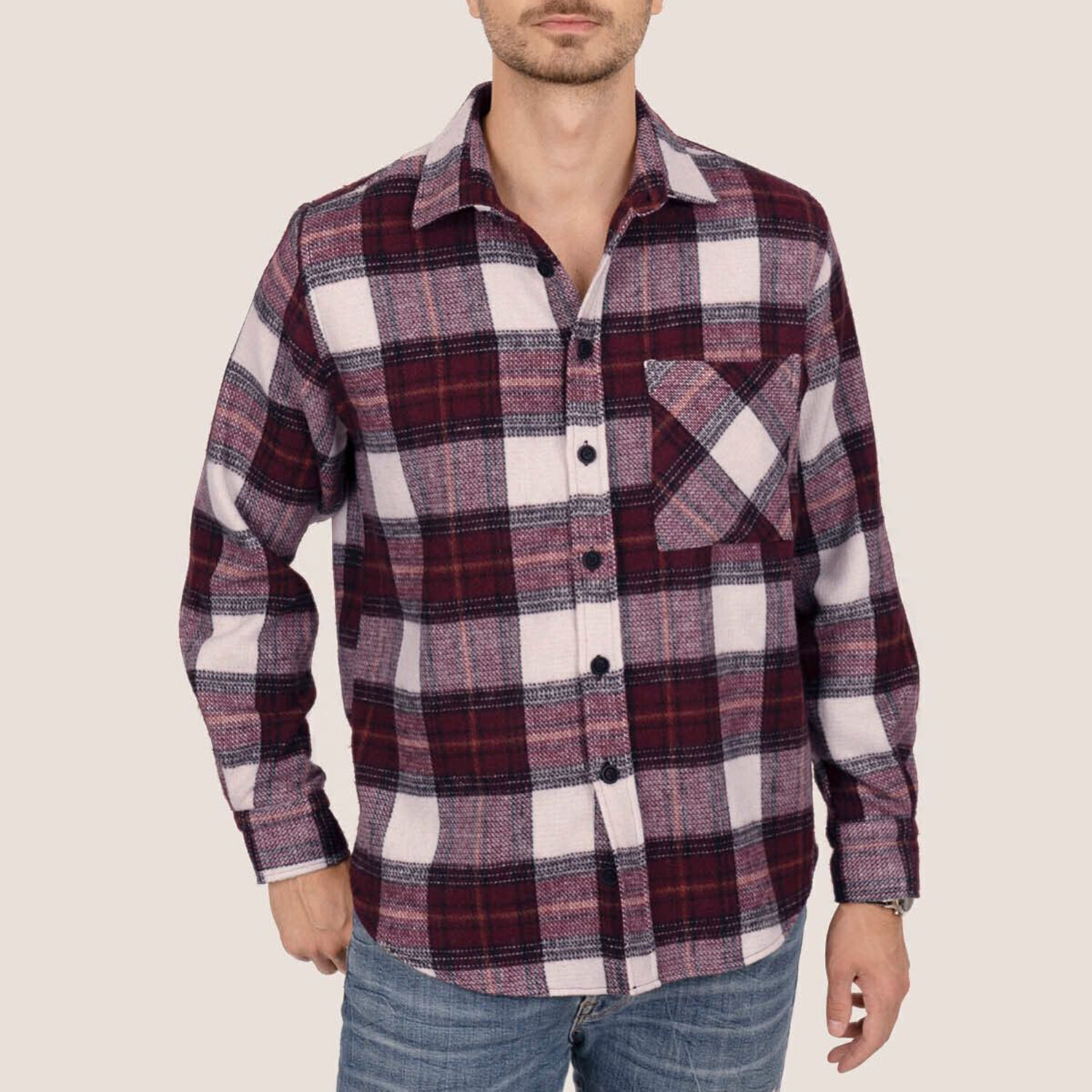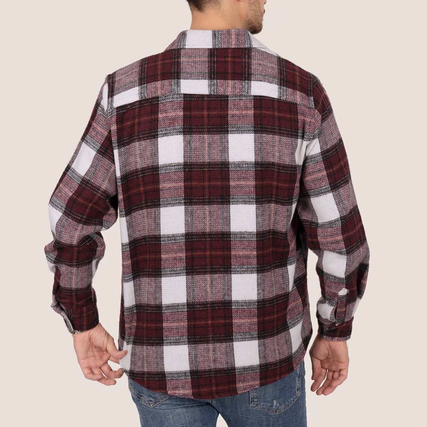 Plaid Flannel Button-Up Shirt // Red + White