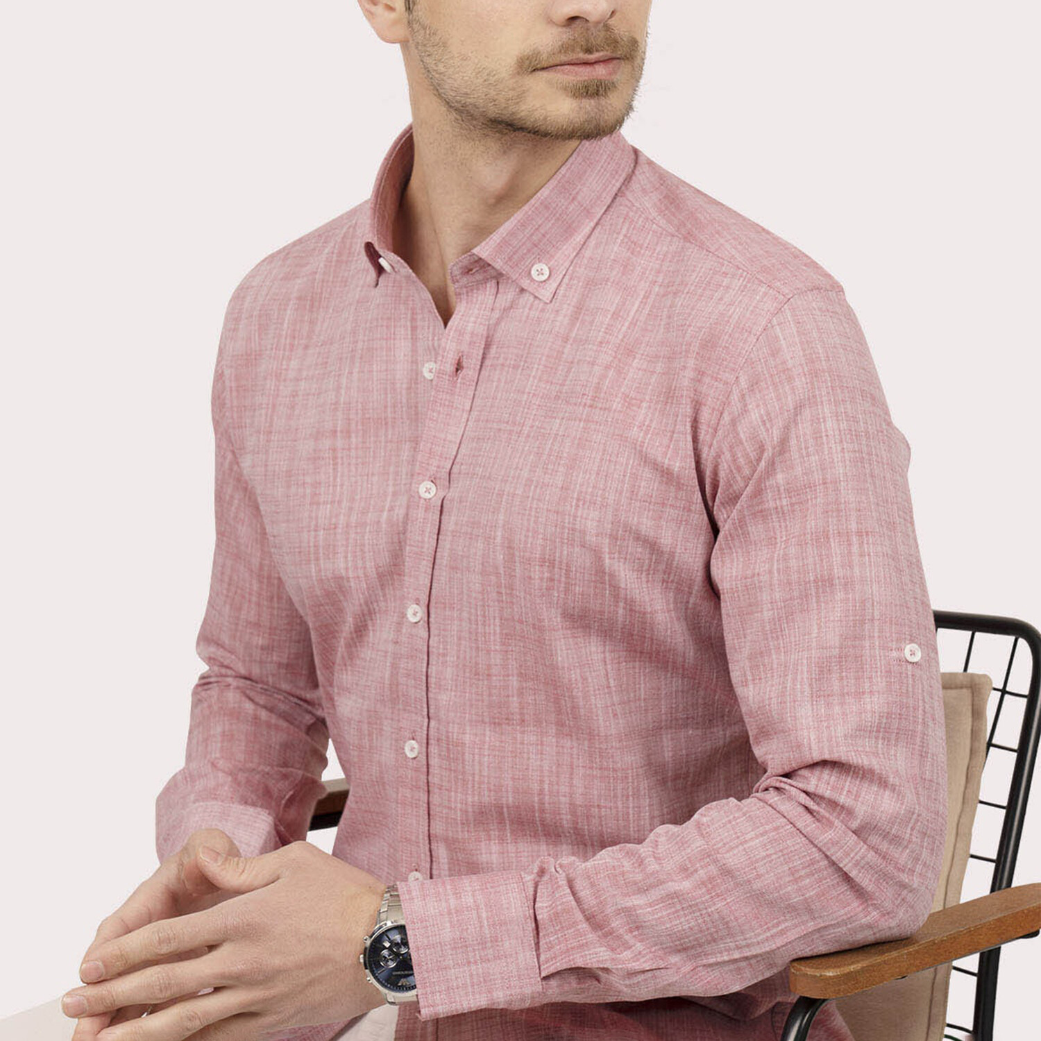 Solid Button-Down Shirt // Melange Light Cherry