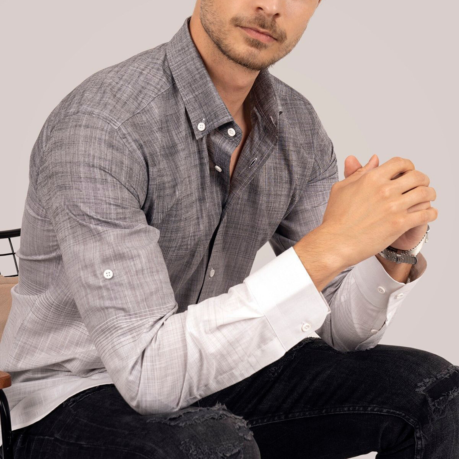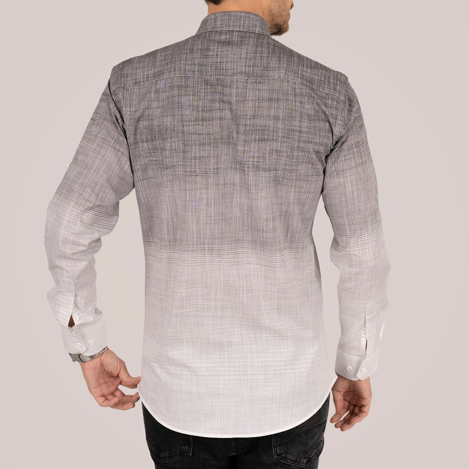 3-Tone Ombre Button-Up Shirt // Slim Fit // Gray-White