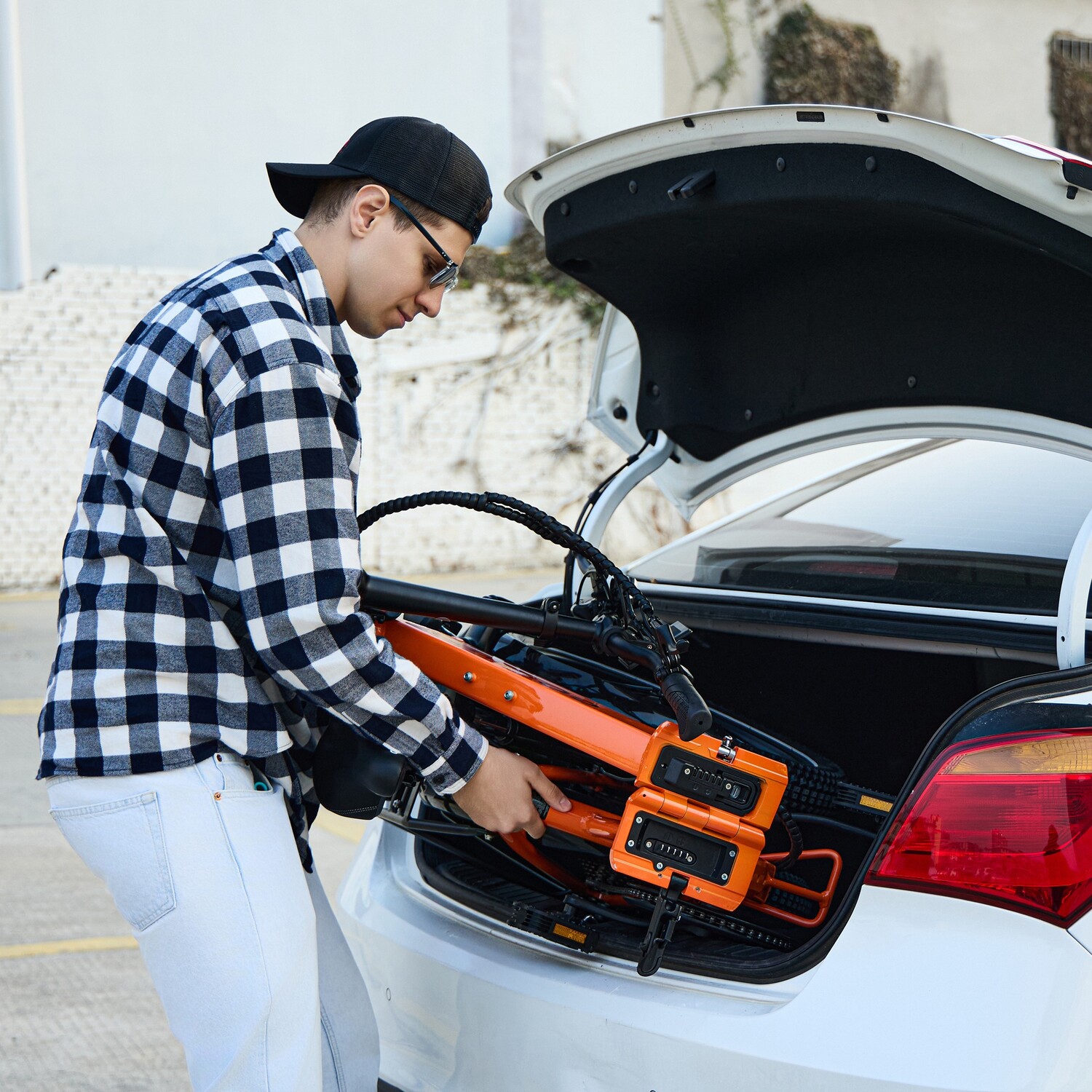 — Step-thru 6061 Aluminum Alloy Folding Frame: The strong, sturdy frame ensures long-term durability and easy mounting and dismounting. The compact folding design makes it portable and easy to store when not in use.