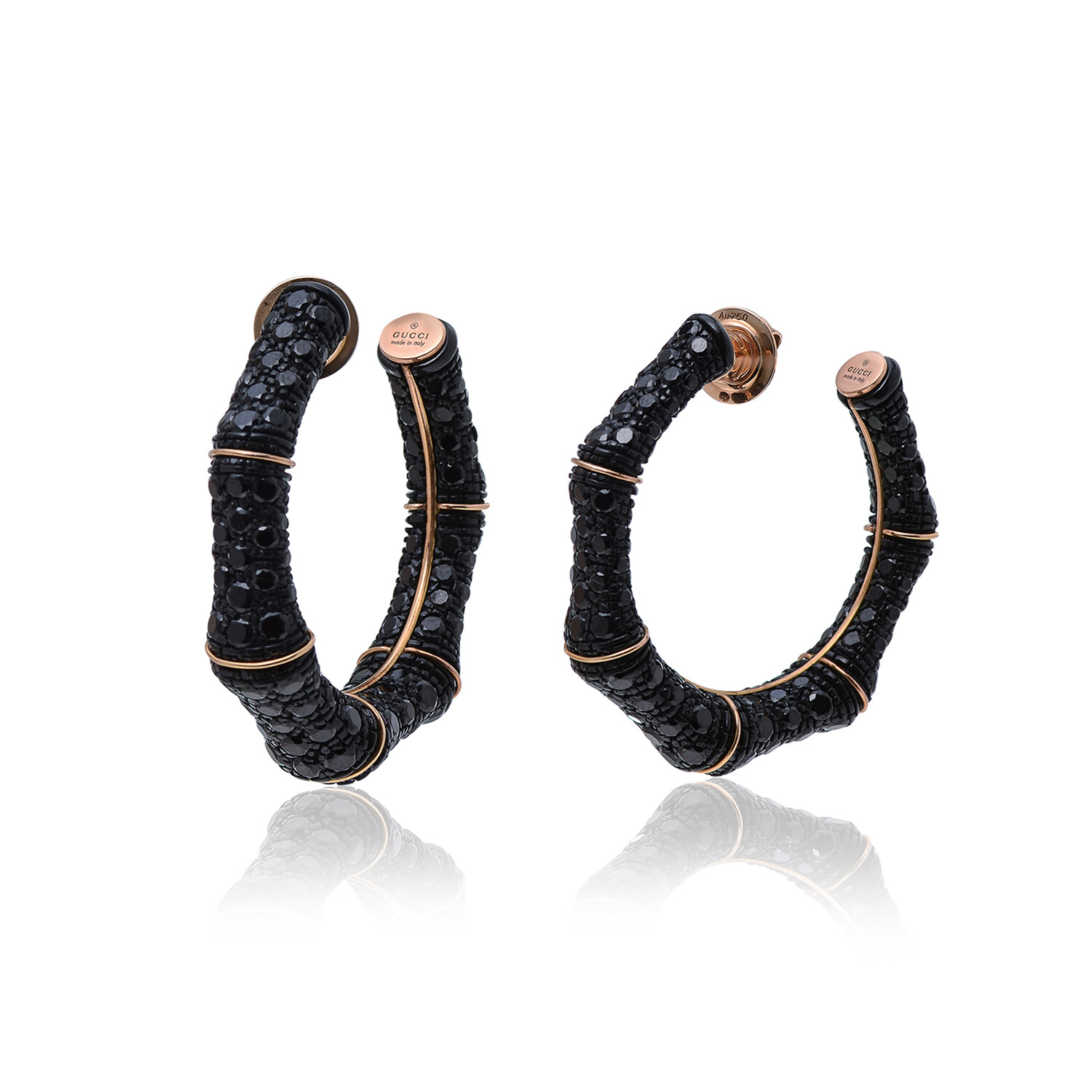 Bamboo 18K Pink Gold Spinel Hoop Earrings // Store Display