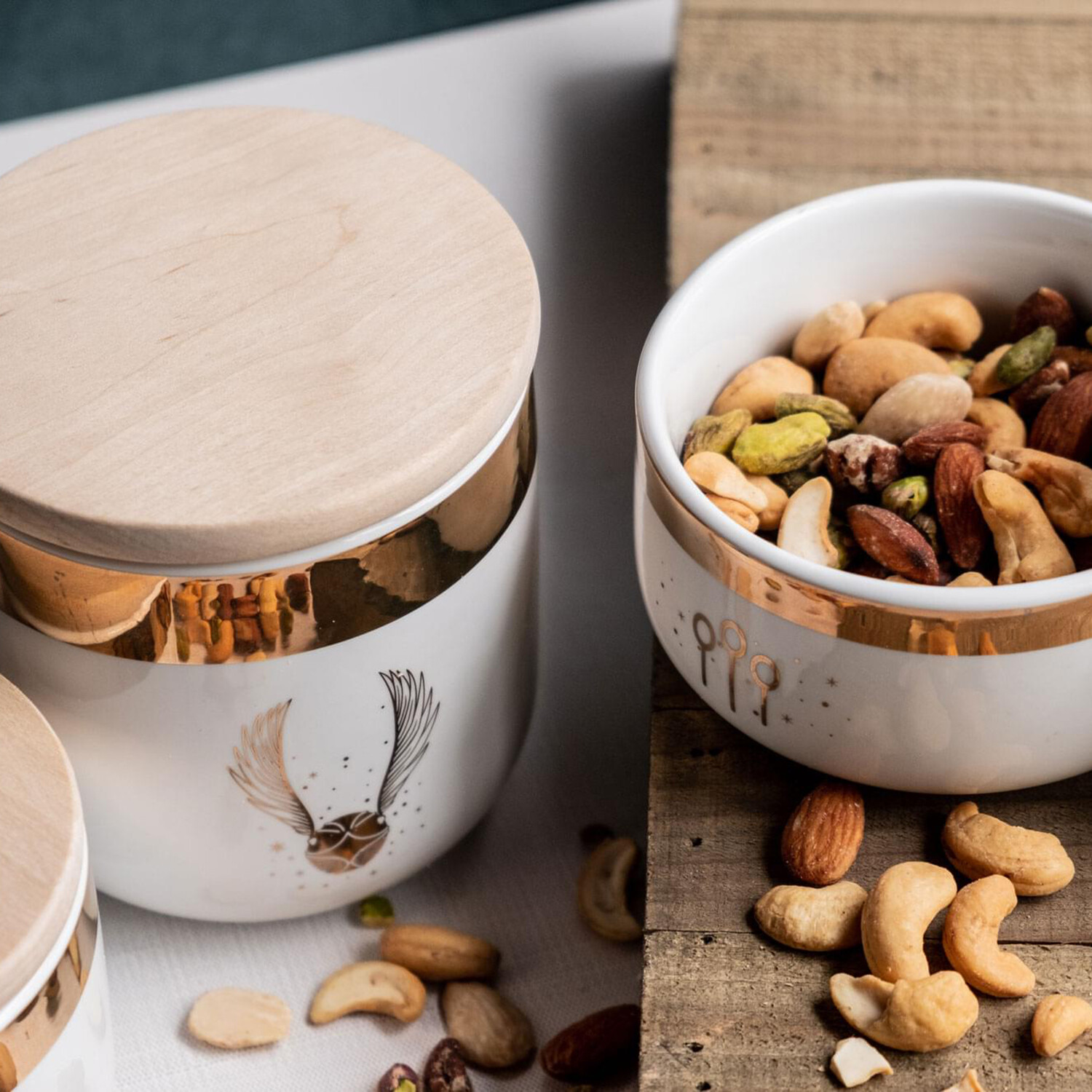 The Harry Potter Quidditch Ceramic Storage Jar Set brings a touch of wizarding charm to your kitchen, desk, or workshop. Each of the three ceramic canisters features a Quidditch icon—goal hoops, broomsticks, and the Golden Snitch—with snug-fitting wooden lids and flexible seals to keep contents fresh. Use them for spices, office supplies, or potion ingredients—no magic required.
