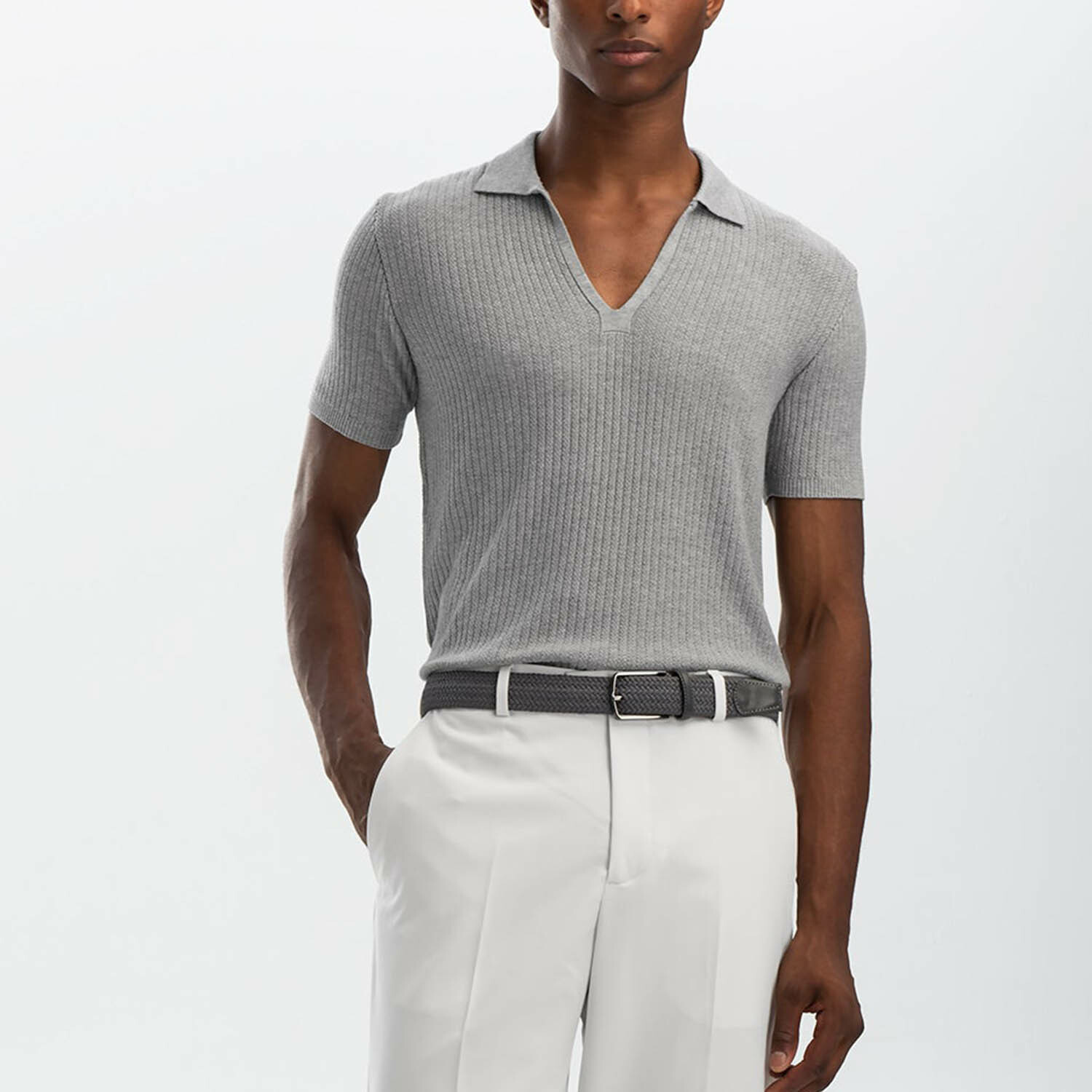 Slim Fit V Neck Polo T-Shirt // Light Gray