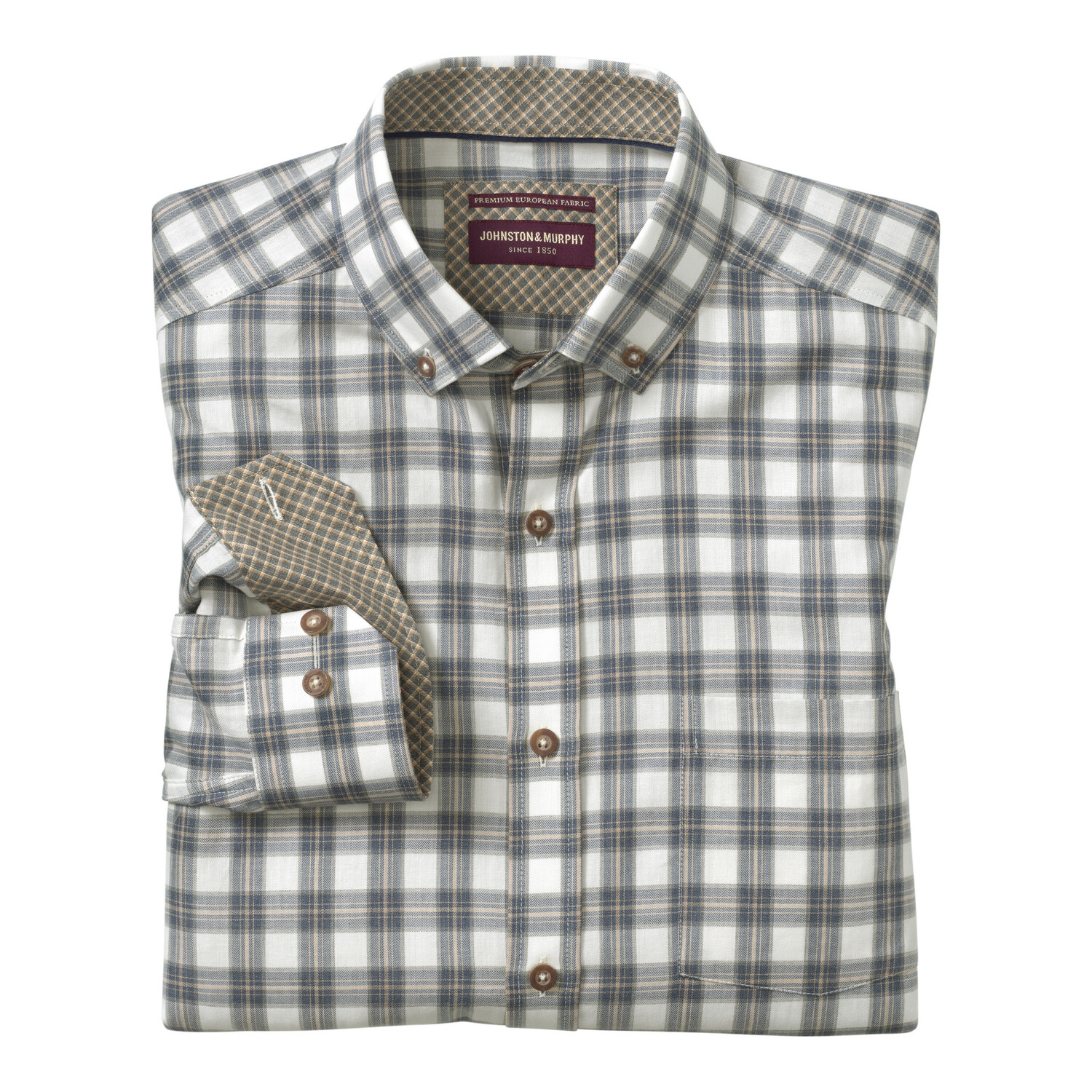 - Handsome checks and solids in a soft and premium melange yarn. - Contrast facing inside collar and cuffs. - Button-down collar construction. - Chest pocket. - Shirttail hem. - 100% Cotton. - Machine wash. - Imported.