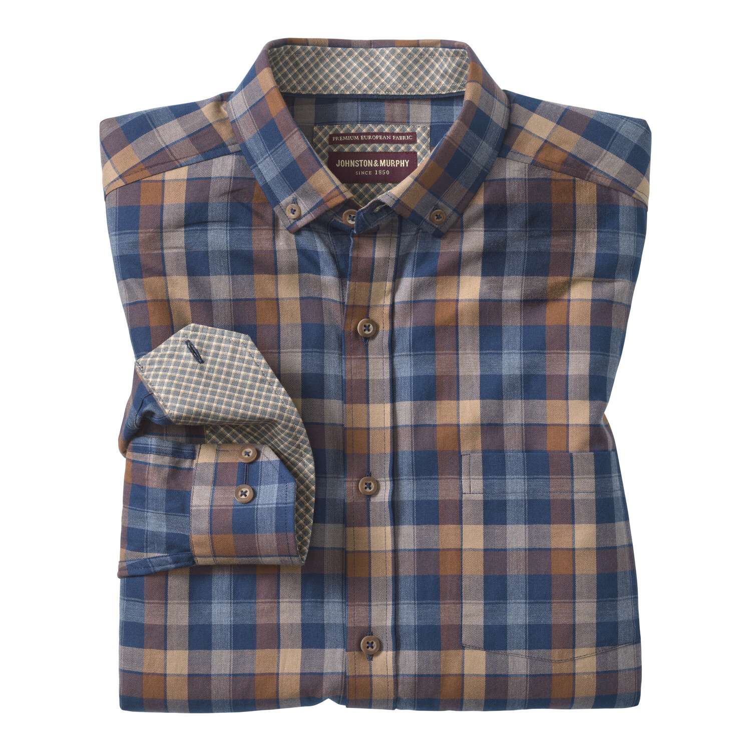 - Handsome checks and solids in a soft and premium melange yarn. - Contrast facing inside collar and cuffs. - Button-down collar construction. - Chest pocket. - Shirttail hem. - 100% Cotton. - Machine wash. - Imported.