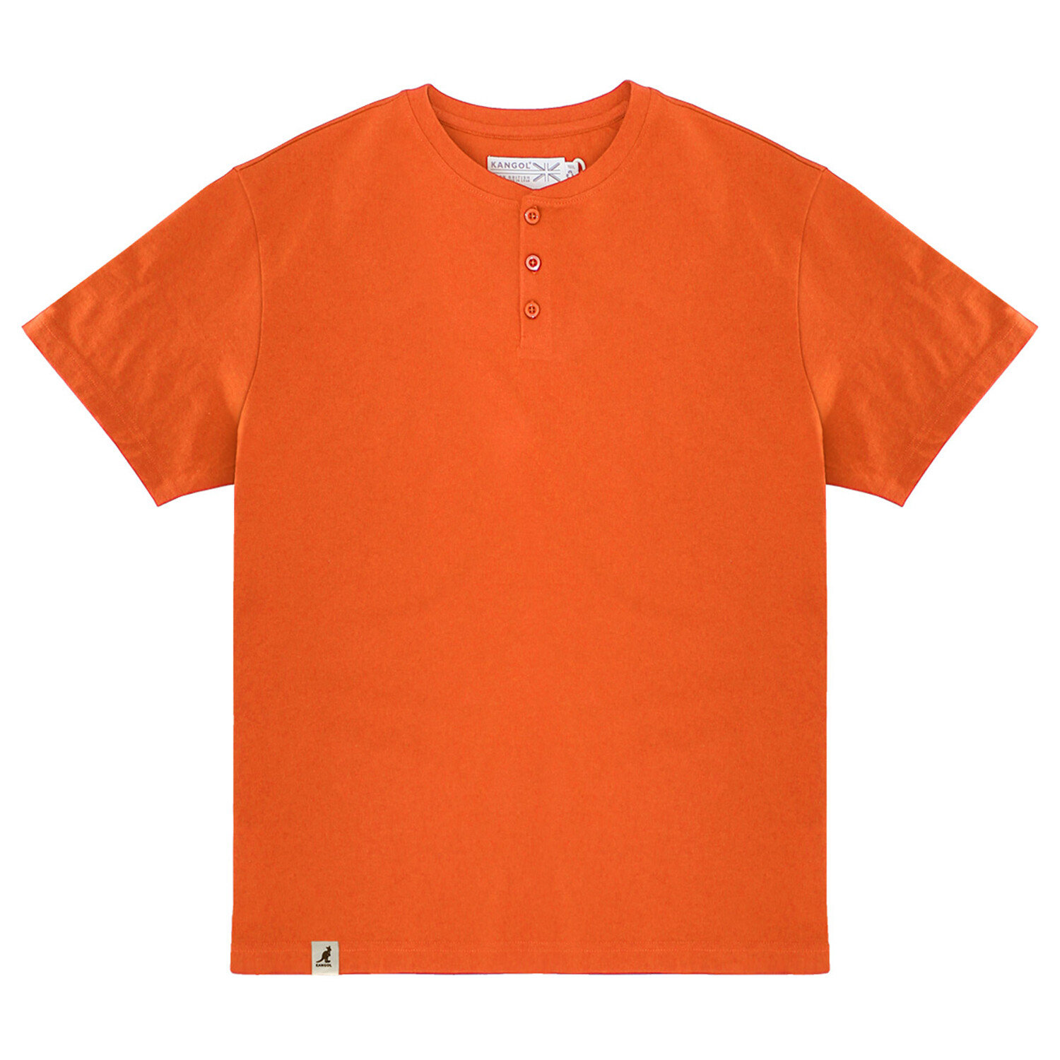 Recycled Yarn Short Sleeve Henley + Logo Tab // Orange