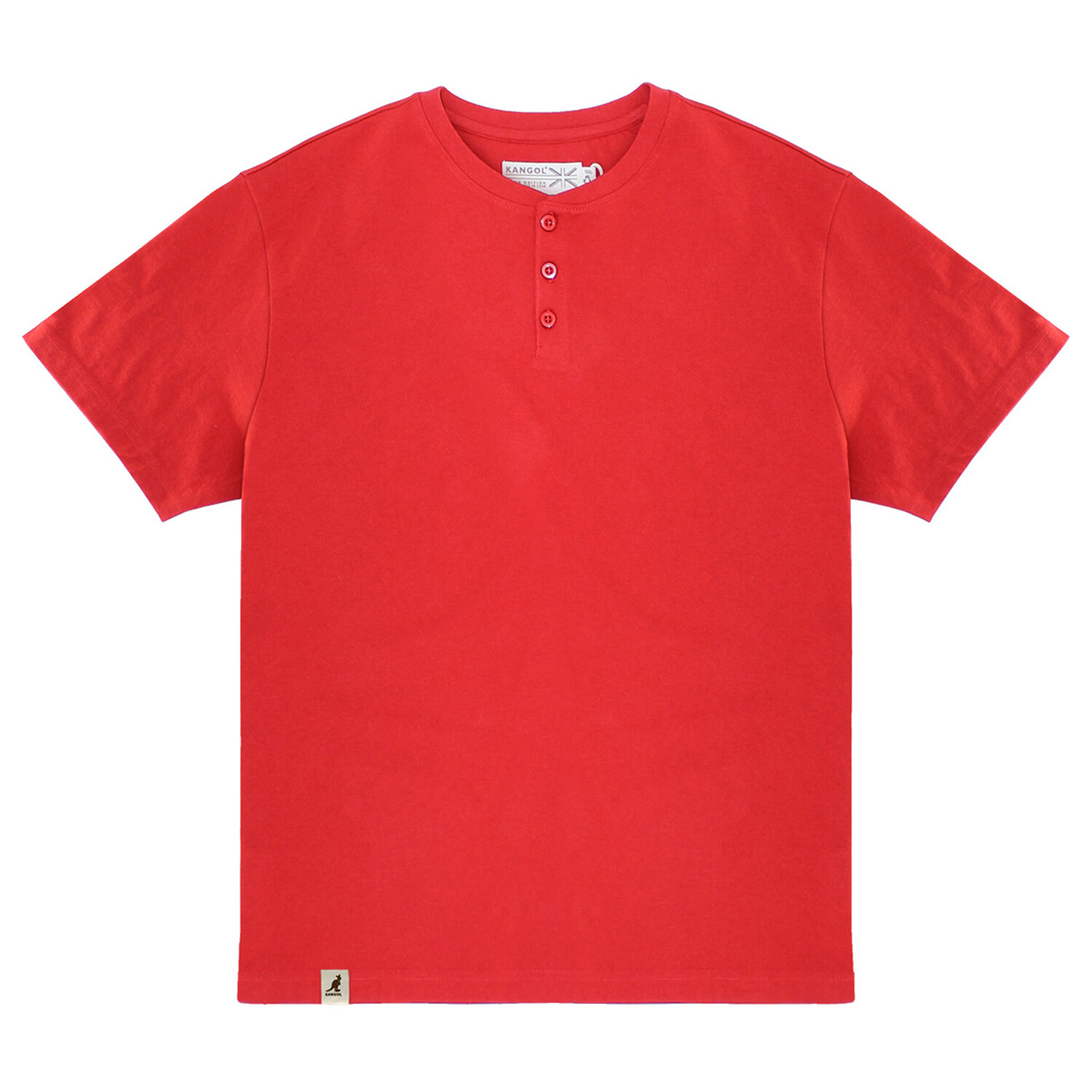 Recycled Yarn Short Sleeve Henley + Logo Tab // Red