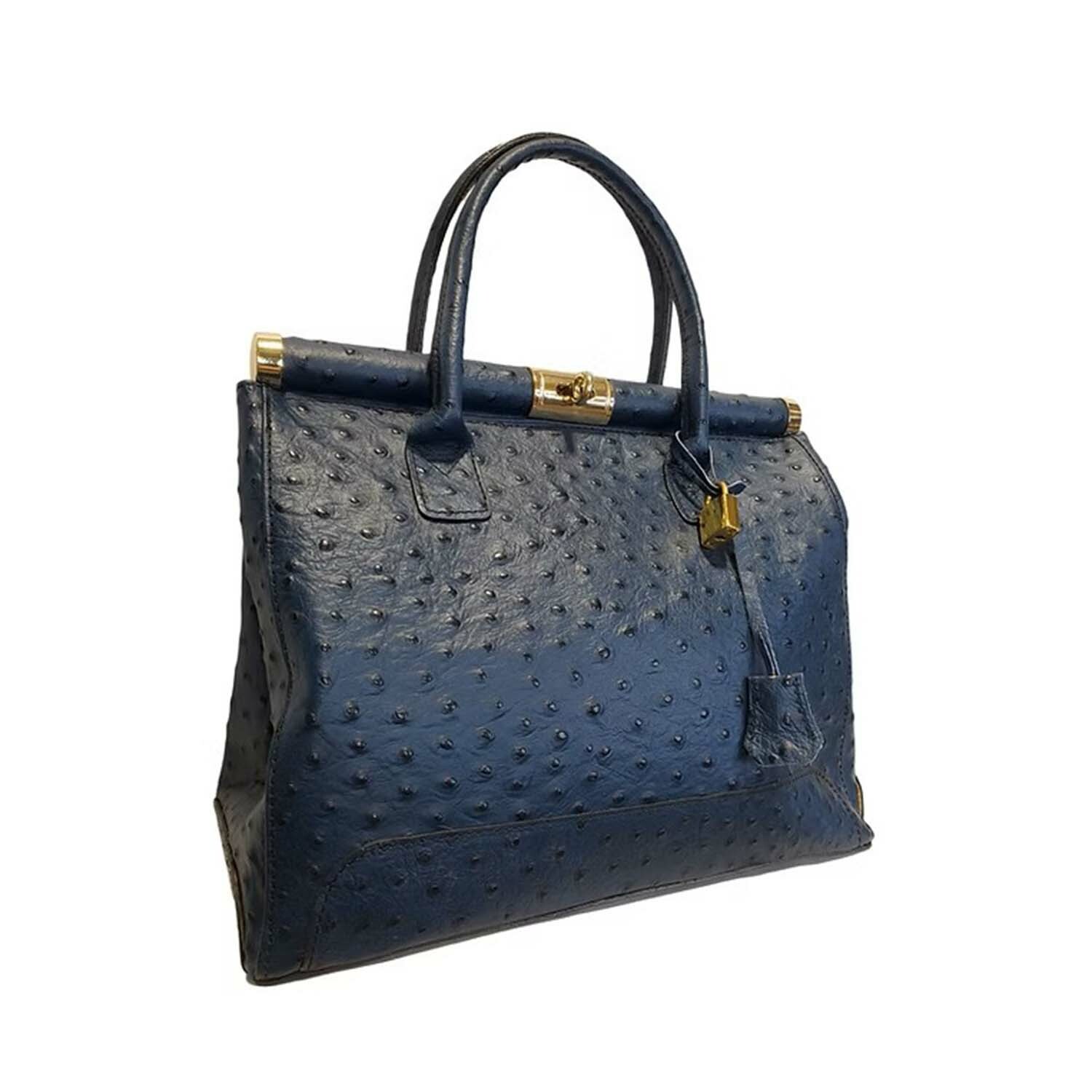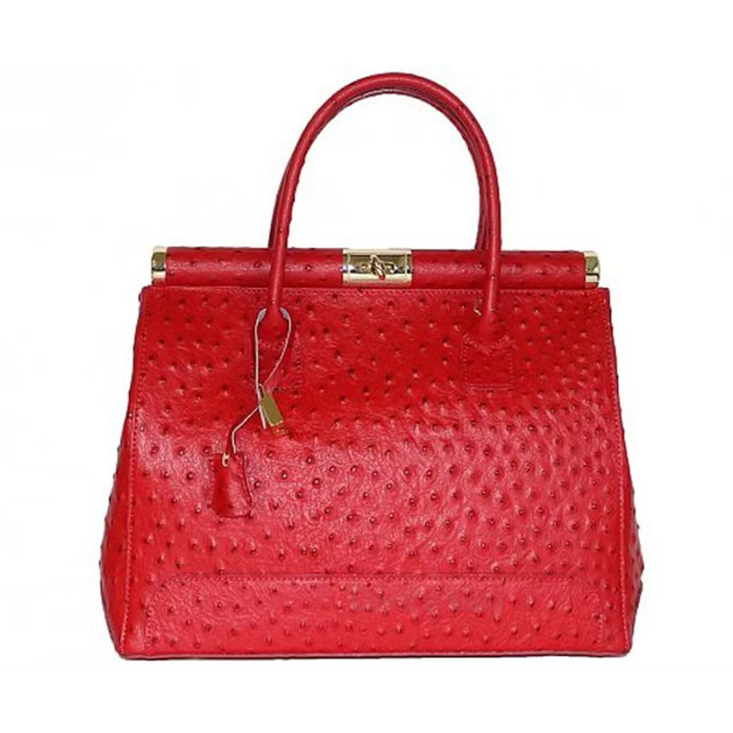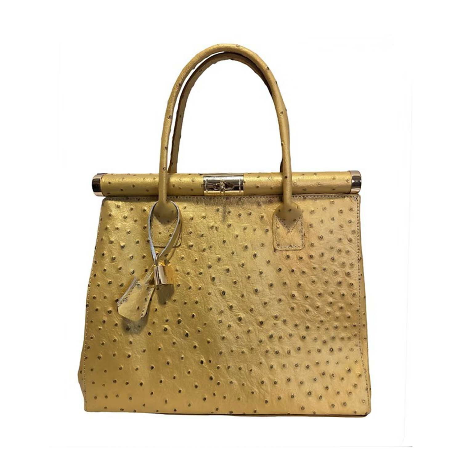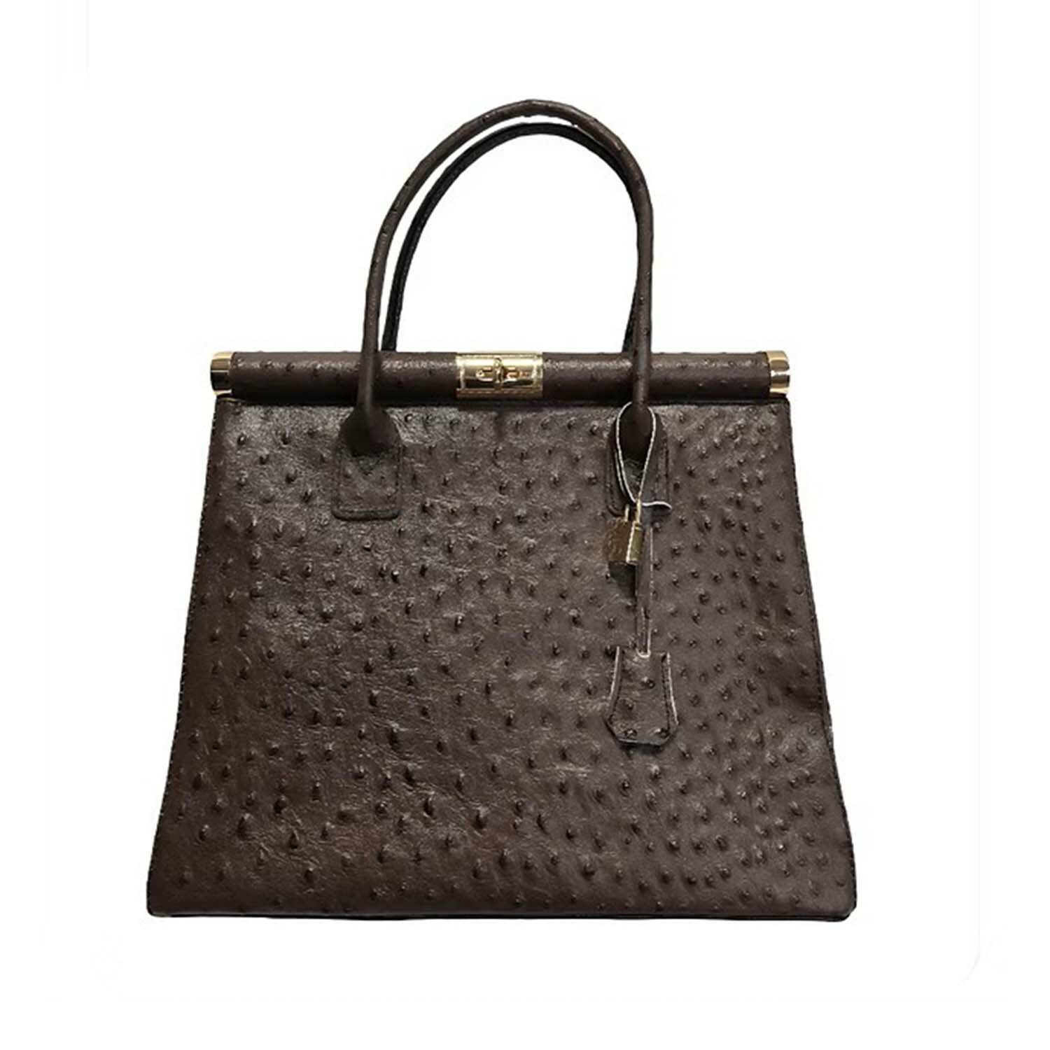 Genuine Handmade Vegetable Tanned Italian Leather Ostrich Print Medium Handbag & shoulder Bag