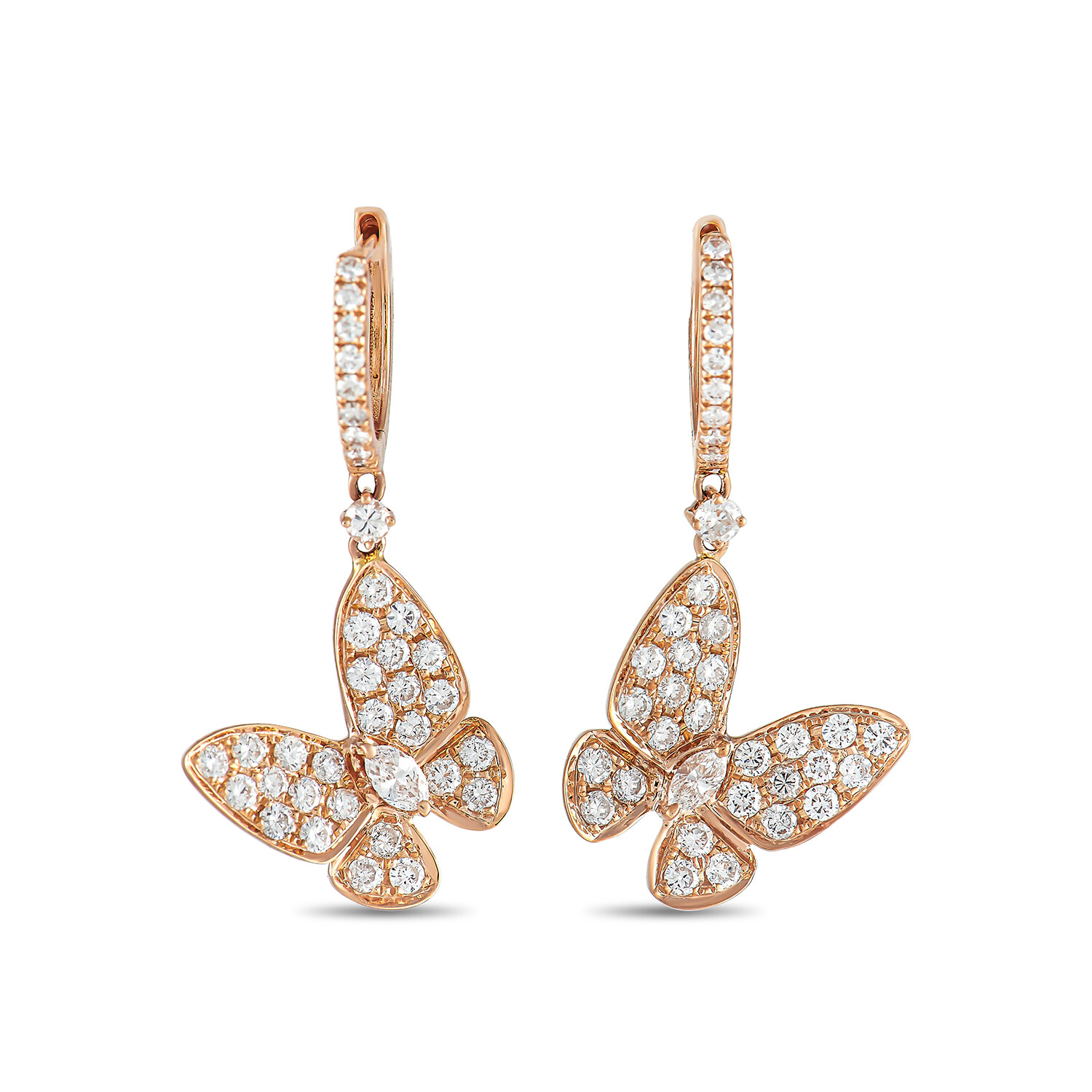 LB Exclusive // Ladies 18K Rose Gold Diamond Butterfly Dangle Earrings // New