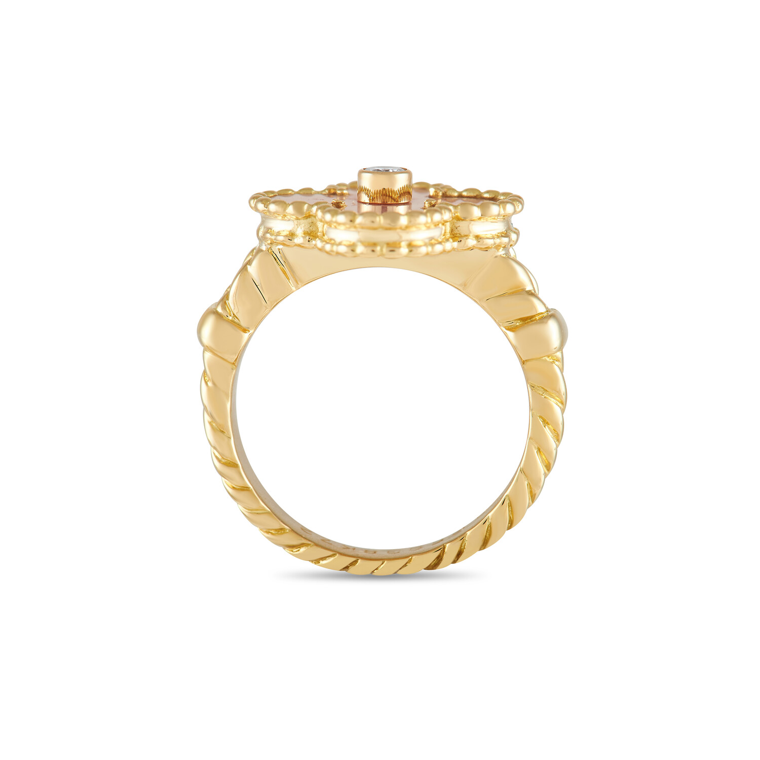 Van Cleef & Arpels // Ladies Alhambra 18K Yellow Gold Coral Ring // Ring Size: 5.25 // Estate