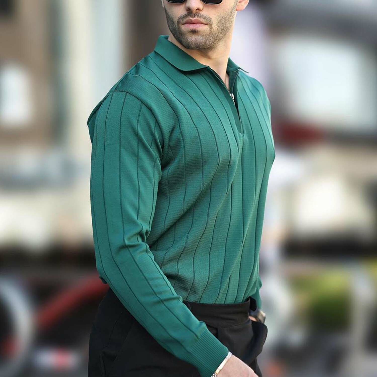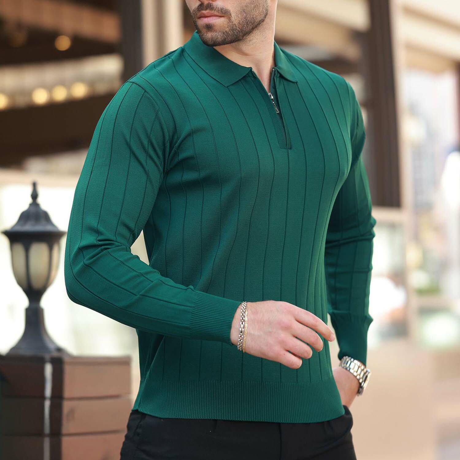 Quarter-Zip Rib Knit Polo Sweater // Green