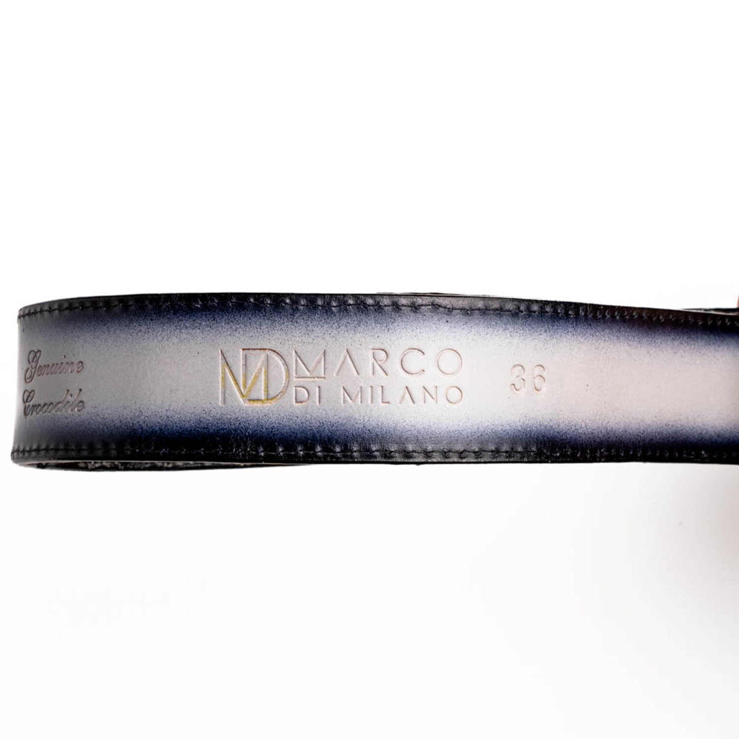 The IOWA belt is a bold tribute to exotic craftsmanship and refined Western design. Handcrafted from full caiman crocodile skin, this belt showcases the natural scale patterns of the belly and flanks, enhanced by precise artisanal detailing and a Western-style antique brass buckle. The inside features a standout element: a hand-stained, gradient finish full-grain leather lining, carefully dyed to match the exterior color—making it one of the most distinctive features in the Marco Di Milano accessories lineup.