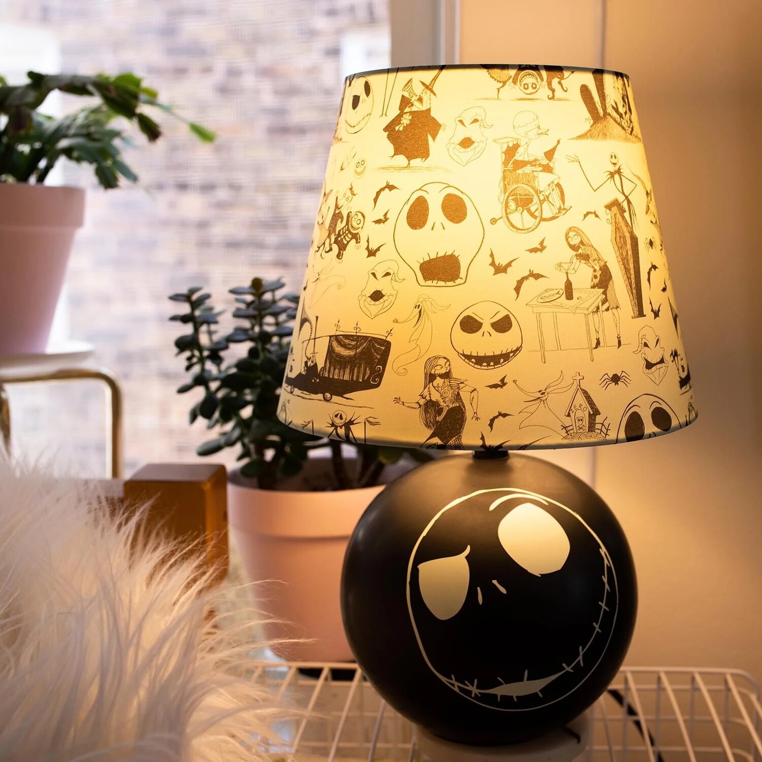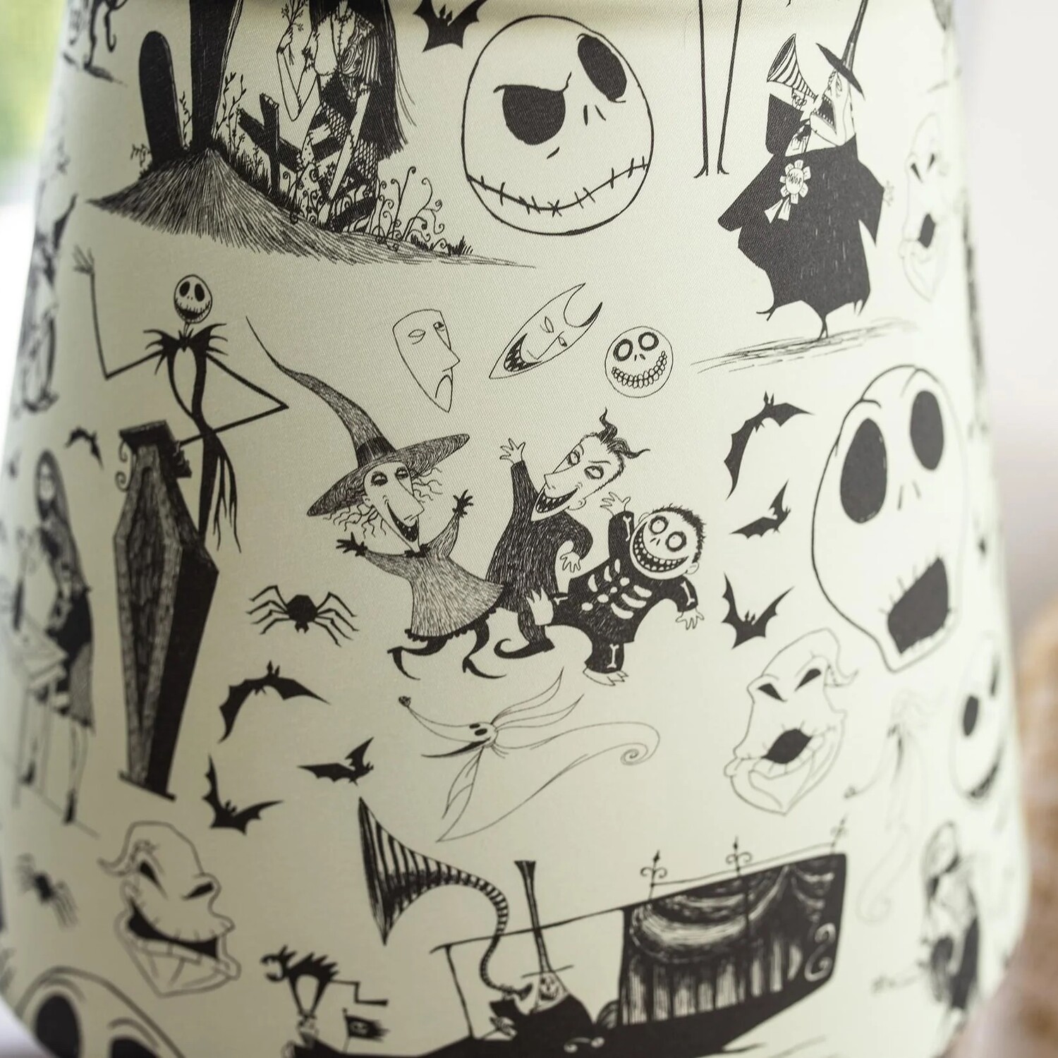 — Lamp shade displays a seamless pattern of Halloween Town’s characters