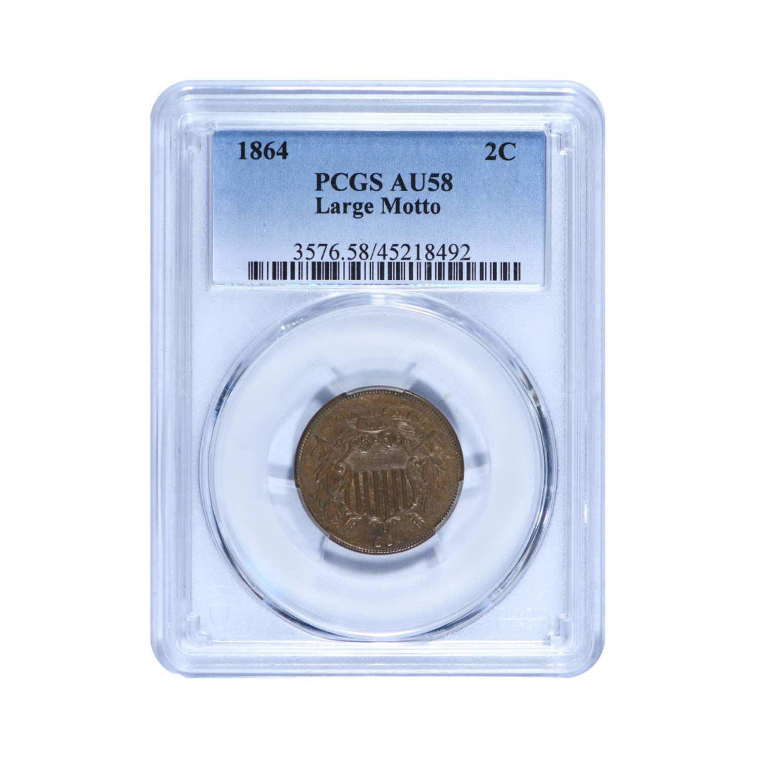 1864 Two Cent Piece // PCGS Certified AU58 // Deluxe Collector's Pouch