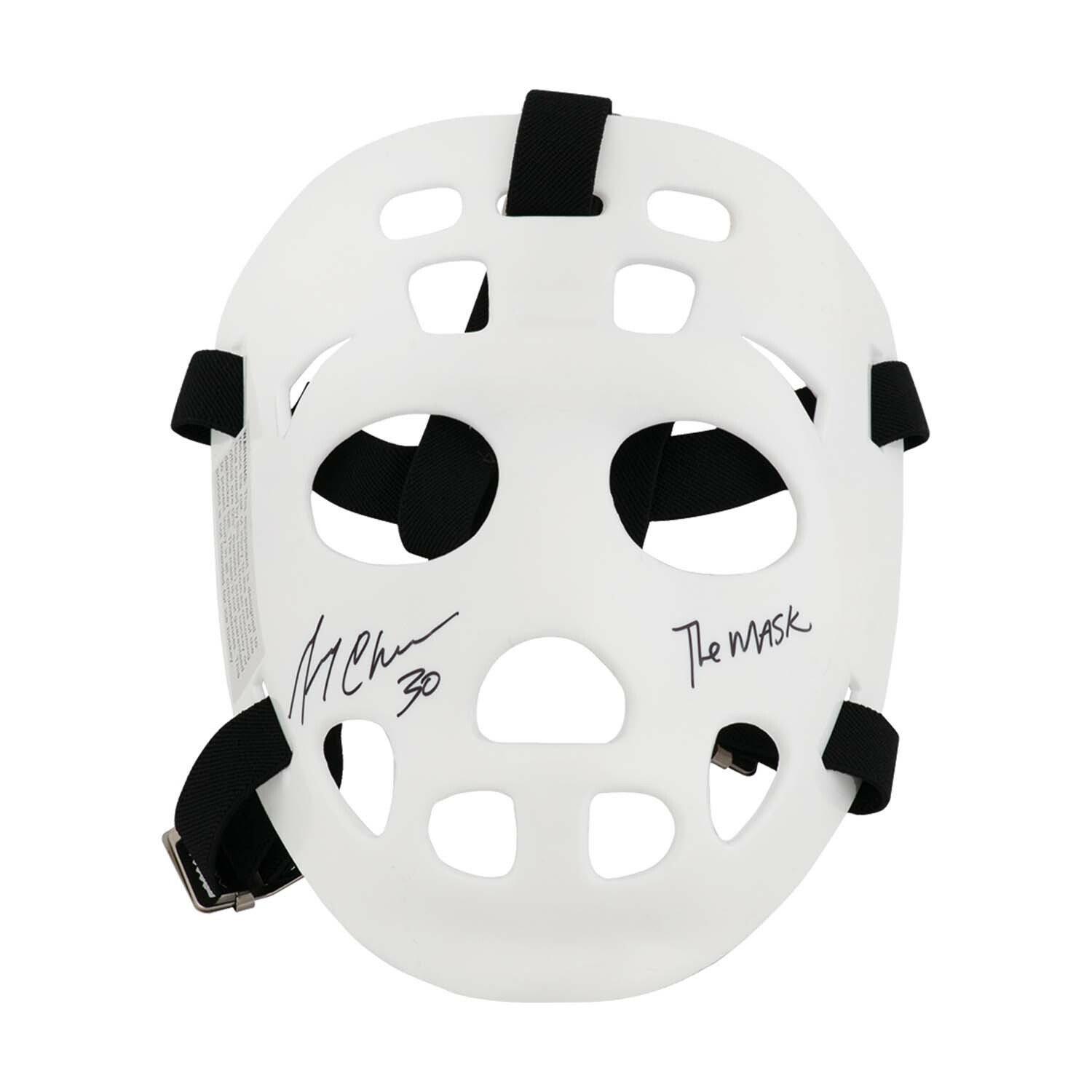 Gerry Cheevers signed white throwback goalie mask with black straps with 'The Mask' inscription. Item comes with a Schwartz Sports Memorabilia tamper-proof numbered hologram and Certificate of Authenticity which can be verified online.