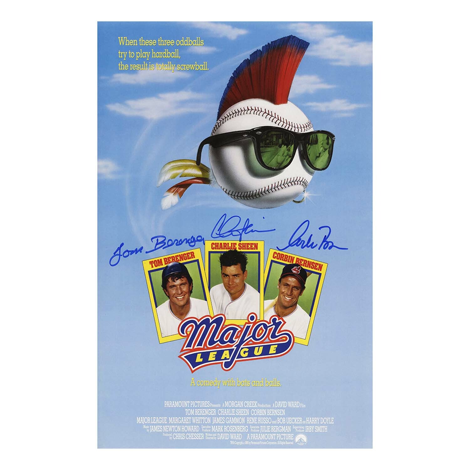 Charlie Sheen, Corbin Bernsen and Tom Berenger triple signed Major League 11x17 movie poster. Item comes with a Schwartz Sports Memorabilia tamper-proof numbered hologram and Certificate of Authenticity which can be verified online.