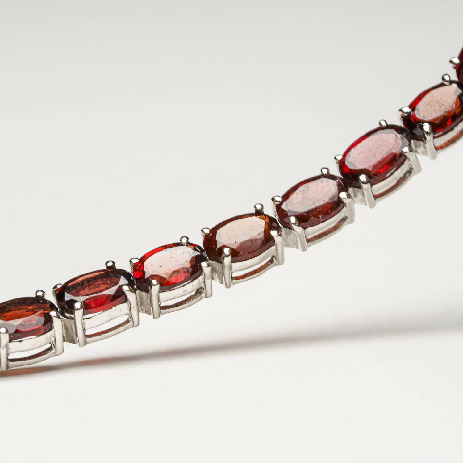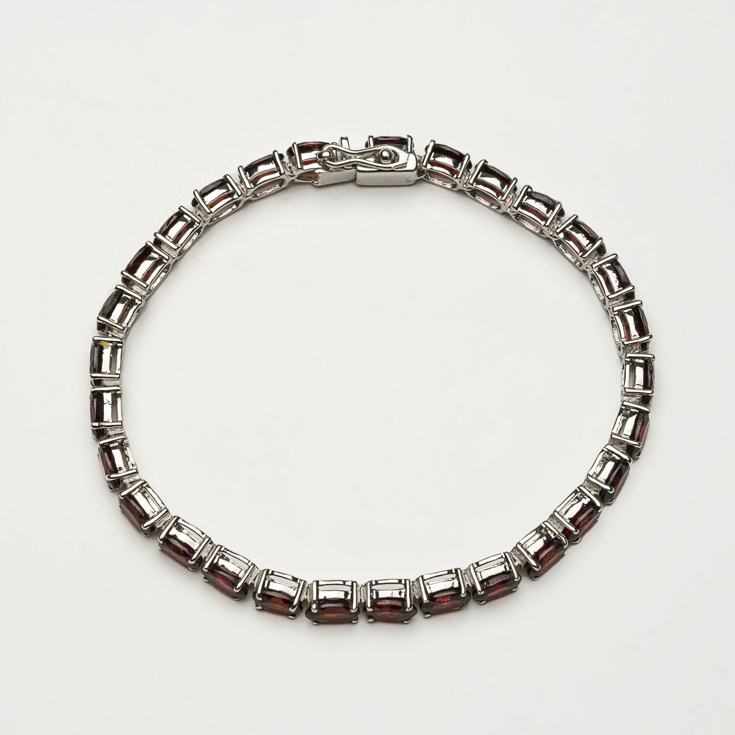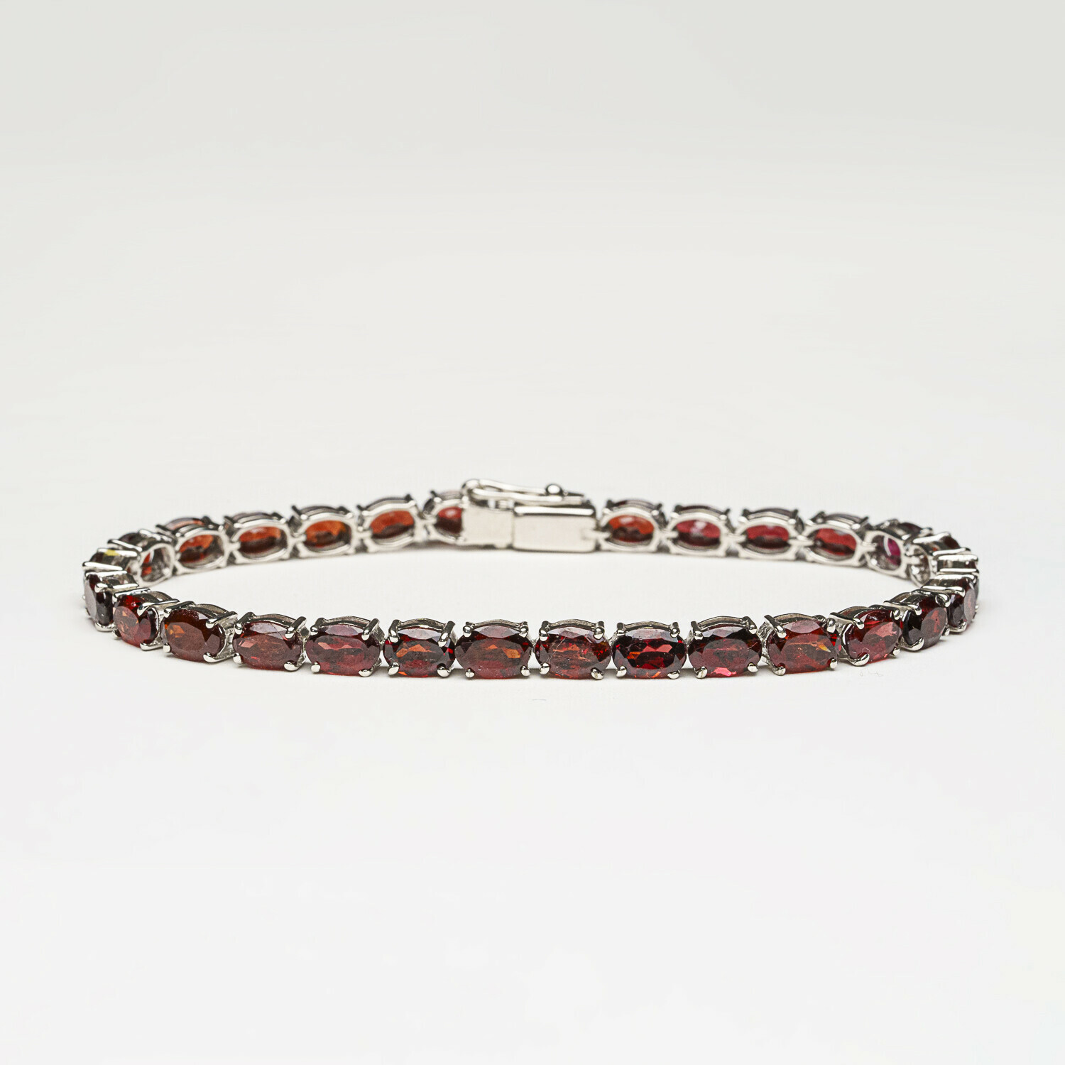 Genuine Garnet Gemstone Tennis Bracelet In .925 Sterling Silver // Pre-Owned