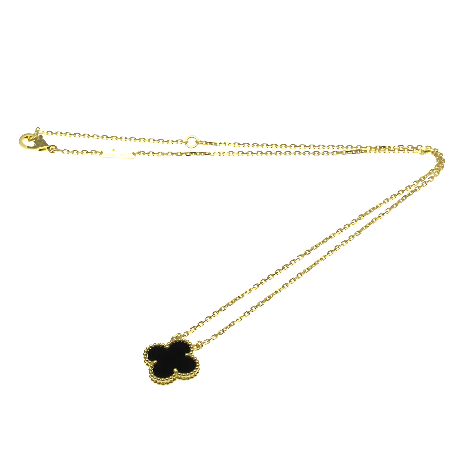 Van Cleef & Arpels // 18k Yellow Gold Vintage Alhambra Onyx Pendant Necklace // 14.56"-16.14" // Store Display