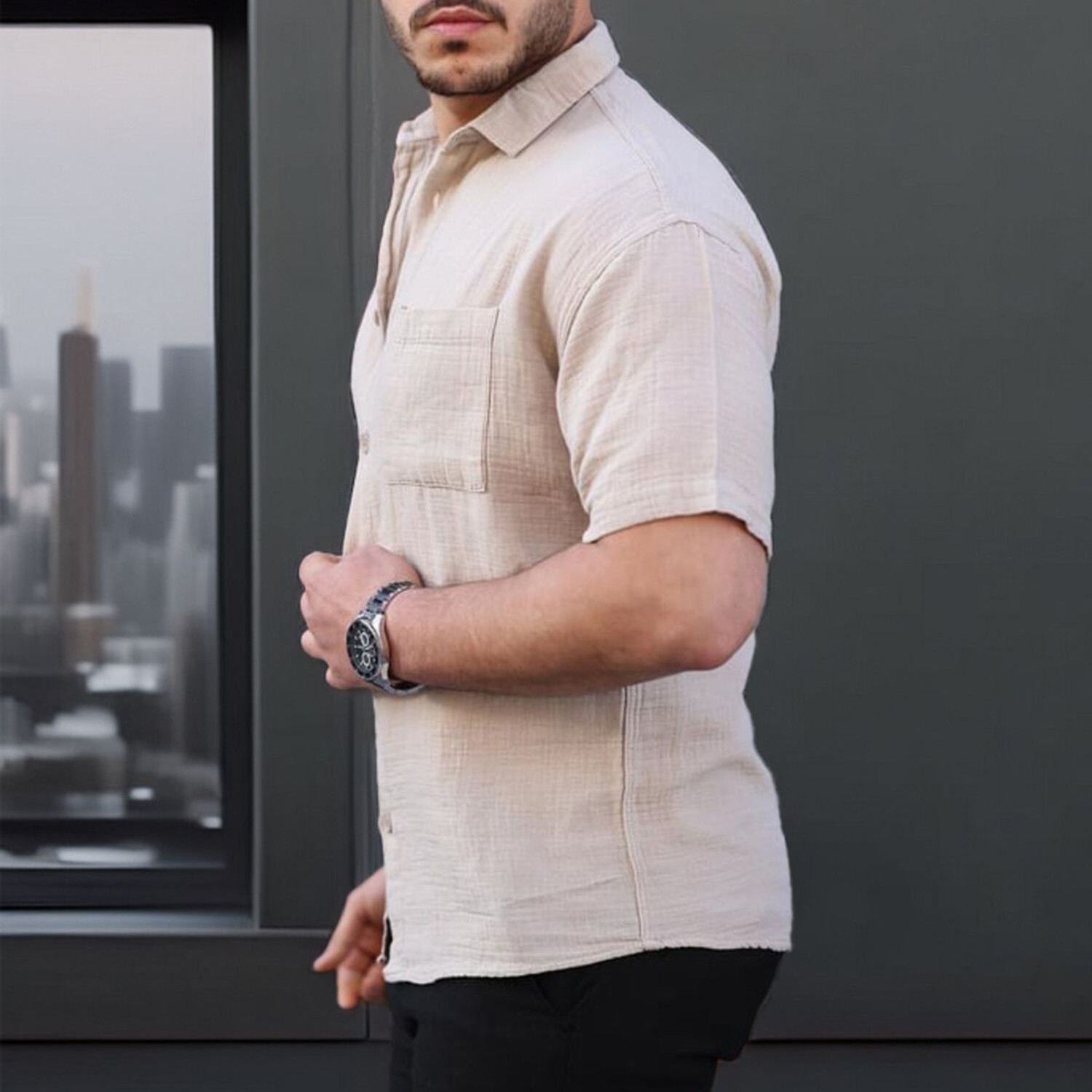 Camp Collar Short-Sleeve Button-Up Shirt // Light Beige
