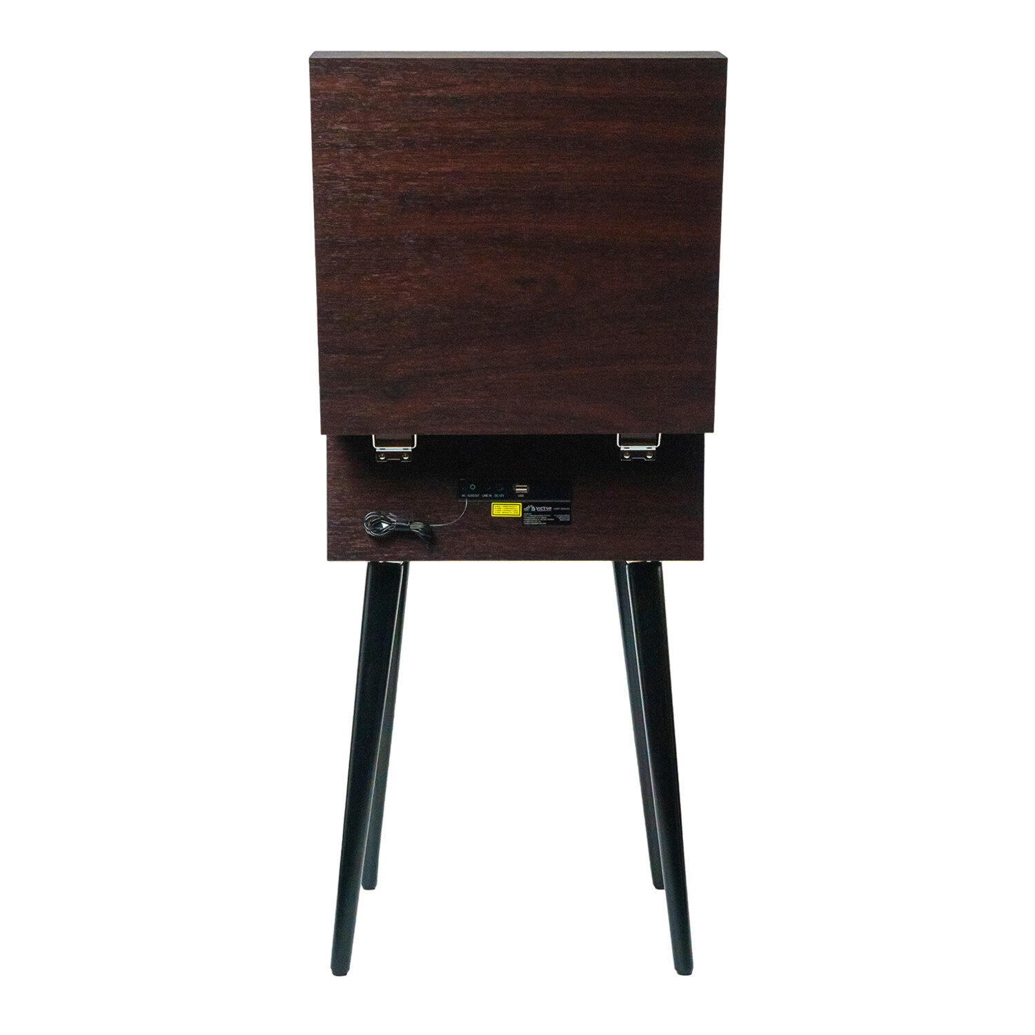 Newbury 8-in-1 Music Center features Chair Height legs with an attractive Retro Style. The built in 3-Speed Turntable, CD Player, and FM Radio are ready to play all your favorite songs! The Dual Bluetooth feature allows streaming of your vinyl records to an external Bluetooth Speaker or plays music from your Smart Device through the Newbury's built in Speakers. Placing a thumb Drive into the USB Slot allows Recording and Playback from your Albums & CD. Can also be used on a Tabletop as base height feet are also included.